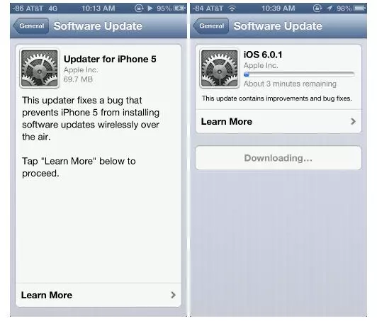 Az iOS 6.0.1-et telepíthetjük több módon is. Amennyiben a telefonunk megfelelő töltöttségi szinttel (50 %) és stabil internetkapcsolattal rendelkezik, akkor OTA (Over-The-Air) módon is elvégezhetjük, de természetesen hagyományosan, egy számítógépről az iTunes segítségével is feltehető.