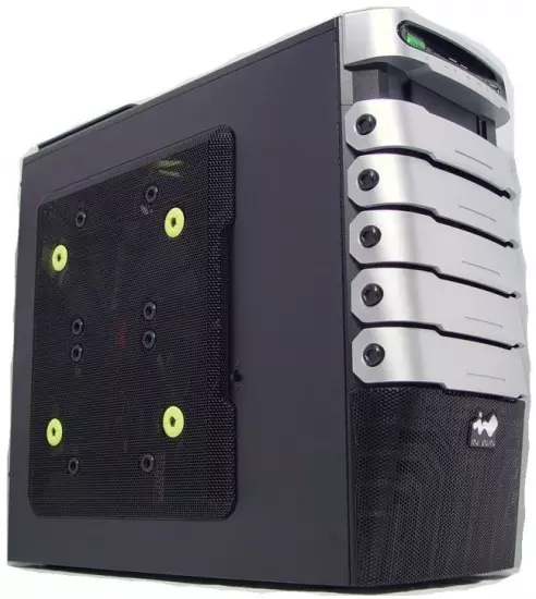Ami az alapfelszereltségét illeti, van benne öt 5,25-ös rekesz, három, egyenként 120 mm-es ventilátor (elől, hátul és felül), egy 220 mm-es oldalsó, LED-es ventilátor, és egy elülső I/O panel eSATA-val, USB 2.0-val és audio portokkal.