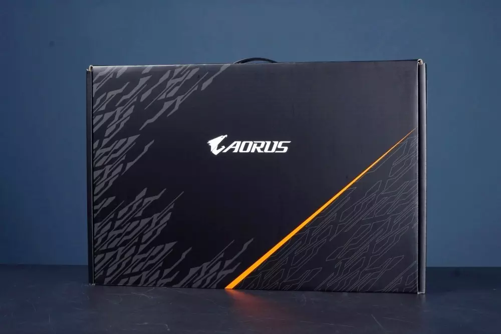 A termék doboza fekete-narancssárga megjelenést kapott, rajta a jellegzetes sólyom ikonnal, illetve az Aorus felirattal. Ebben találjuk magát a laptopot, a hozzá tartozó 230 Wattos fali töltőt és egy használati útmutatót.
