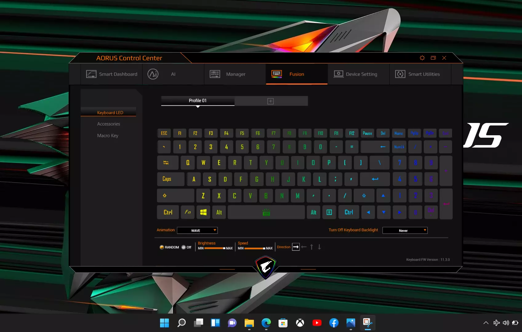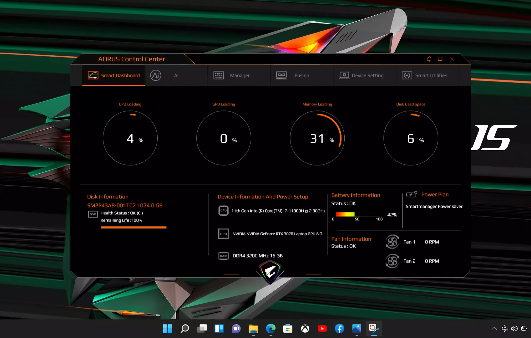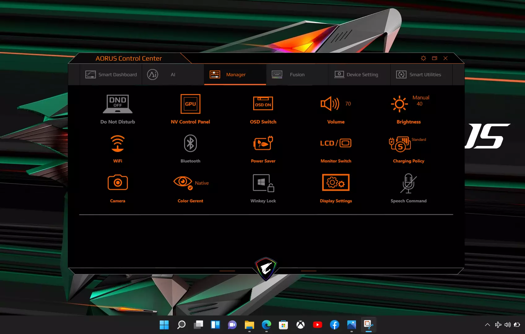 Szoftveresen érdemes még hozzátenni, hogy a gép gyárilag Windows 11 Home-mal érkezik, ami egy igényes újradolgozása lett az eddigi rendszernek. Ezen felül természetesen kapunk egy egyedi Gigabyte vezérlőasztalt (alkalmazást), ahol minden adatot láthatunk a gépünkkel kapcsolatban, és teljesen személyre is szabhatjuk azt, legyen szó a billentyűzet átprogramozásáról, világításáról, vagy a hűtés erősségéről, esetleg a teljesítmény szabályozásáról.