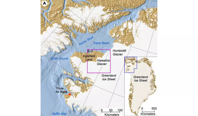A kráter nyomaira elsőként egy NASA-projekt nyomán akadtak rá a szakértők: ennek keretében 1997–2014 között radarral vizsgálták a sarkvidéki régiók jég alatt rejtőző formáit, és az adatok elemzésekor 2015-ben valaki felfigyelt egy nagyméretű kerek struktúrára a térségben. A kérdéses kutató Nicolaj K. Larsen, az Aarhus Egyetem munkatársa volt, aki rögtön érezte, hogy valami fontosra akadt rá. 2016-ban immár Larsen és kollégái, illetve a Kansasi Egyetem munkatársai részvételével részletesebb radarfelvételek készültek a régióról, végül pedig egy nemrégiben lefolytatott, helyszíni kutatással a becsapódás tényén túl annak részleteit is sikerült tisztázniuk a szakértőknek.
