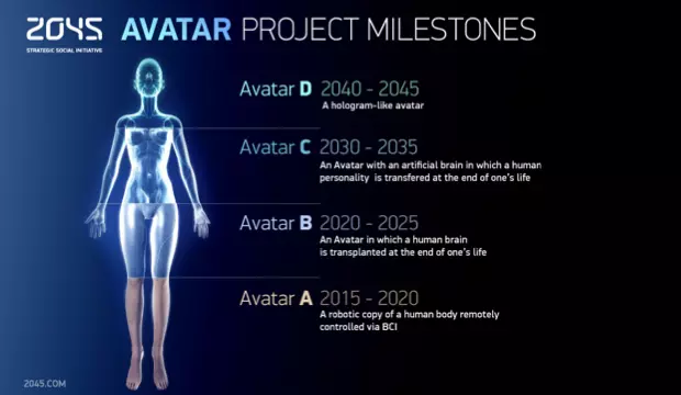 Azok számára, akik örökké szeretnének élni és van néhány fölösleges milliárdjuk, van egy remek ajánlatunk. Dimitrij Icskov orosz médiamogul és kutatócsoportja nem kevesebbet tűzött ki maga elé, minthogy halhatatlanná tegye az emberi nemet. Ezt oly módon tervezik megvalósítani, hogy létrehoznak egy teljesen működőképes, holografikus emberi avatárt, amelyet egy mesterséges aggyal egészítenek ki, az alany saját gondolataival, érzéseivel és emlékeivel feltöltve. A 2045 Initiative nevű projekt mindez 2045-ig tervezi végrehajtani.