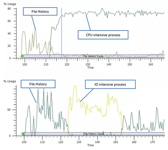 Az új alkalmazás az NTFS fájlrendszerrel is jól együttműködik. Eddig a legtöbb adatmentő szoftver úgynevezett "brute force", azaz "nyers erő" módszerrel ellenőrizte az adott meghajtót, hogy az egyes alkalmazások, illetve könyvtárak esetében a korábbi mentés óta történt-e változás. Ez az eljárás azért nem jó, mert jelentős negatív hatást gyakorol a rendszer összteljesítményére, valamint viszonylag sok idő kell ahhoz, hogy a folyamattal végezzen a rendszer. A File History ezzel szemben az NTFS Change Journal funkcióját használja ahhoz, hogy megkeresse azokat a fájlokat, amelyek tartalma a korábbi mentés óta módosult. A szolgáltatás azt is figyeli, hogy futása közben I/O vagy CPU intenzív folyamatok elindultak-e – ha igen, akkor csökkenti a rendszer terhelését és csak akkor foglal le ismét több erőforrást, ha a konkurens folyamat már véget ért.