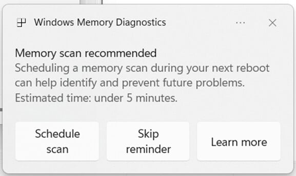 Az újítás lényege, hogy a rendszer egy kékhalálból való feltápászkodás után felajánlja majd a felhasználónak a sikeres bejelentkezést követően, hogy végeztessen el egy memóriavizsgálatot, amit az ajánlás elfogadását követően a következő rendszerindításra időzít a Windows. Ezzel a fejlesztők célja annyi, hogy csökkentsék a memóriahibából fakadó további rendszer-összeomlások, adatvesztések, fájlsérülések, illetve egyéb kellemetlenségek esélyét.