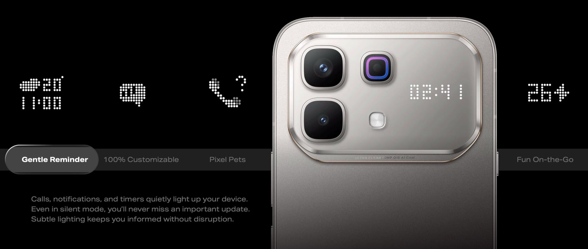 A Note 60 Pro felvonultat egy “Active Matrix” kijelzőt is, ami rejtve van a burkolat alá, csak akkor ragyog át a hátlapon, mikor valamit közölni szeretne a felhasználóval. Ez is hasznos lehet az értesítéseknél, de szórakoztató faktor is van benne, mert megjeleníthető rajta animált állat vagy minijáték is. Sztereó hangzást nyújtanak az okostelefonok, és a JBL adja a nevét a hangrendszerhez – vélhetően korrekt lesz a hangminőség, persze mobilokhoz mérten.