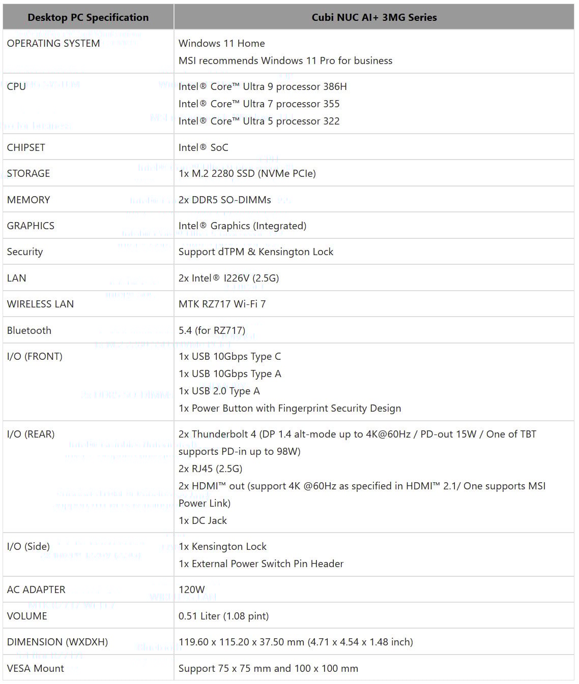 Az Intel Panther Lake sorozatára támaszkodó apróság 119,6 milliméter széles, 115,2 milliméter mély és 37,5 milliméter magas, extraként pedig még VESA 100 és VESA 75 támogatással is rendelkezik, ennek köszönhetően televízió vagy monitor hátuljára éppúgy felszerelhető, mint asztallap aljára, fali konzolra, vagy egyéb helyekre, ahogy a szükség hozza. A ház gyártásánál egyébként újrahasznosított műanyagot is használtak, maga a termék pedig FSC tanúsítvánnyal ellátott csomagolóanyagban érkezik annak érdekében, hogy a környezettudatosságra is figyelmet fordíthassanak.