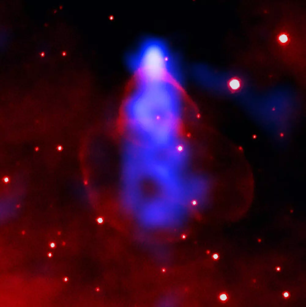 Amikor a kérdéses pulzár áttörte az íjhullám frontját, mágneses mezője közvetlenül kapcsolódni tudott a környező gáz mágneses mezőjével. Az ilyen interakciók rendkívül összetettek, de lényegében arról van szó, hogy mindez anyagszivárgást okozott, mint amikor egy nagynyomású vezetéken egy apró lyuk keletkezik. A pulzár anyagából a fénysebesség egyharmadával száguldó szubatomi részecskék indultak útnak, keresztül a csillagközi médiumon.