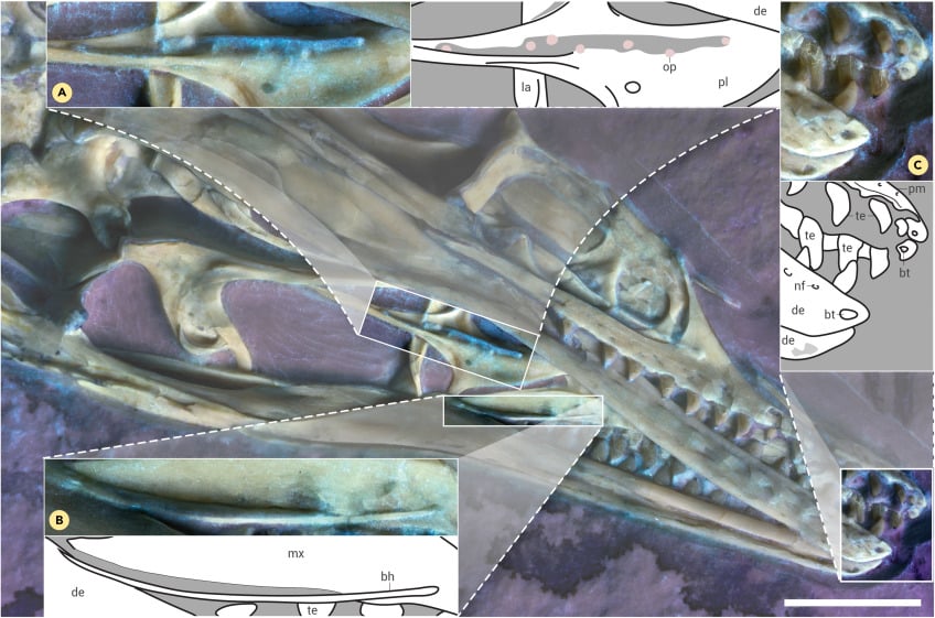 A példány feje is sokat elárul. O’Connor és csapata elsőként elemezte a szájpadlás szerkezetét. Ez kulcsfontosságú, mert a ma élő madaraknál a szájpadlás nagyon mozgékony, ami lehetővé teszi számukra, hogy speciális táplálkozási mechanizmusokat használjanak. „Ahhoz, hogy megtudjuk, mozgékony-e a koponya, tudnunk kell, hogy milyen a szájpadlás morfológiája” – mondja O’Connor. Kiderült, hogy ez már nagyon madárszerű voltak a kérdéses példányon.