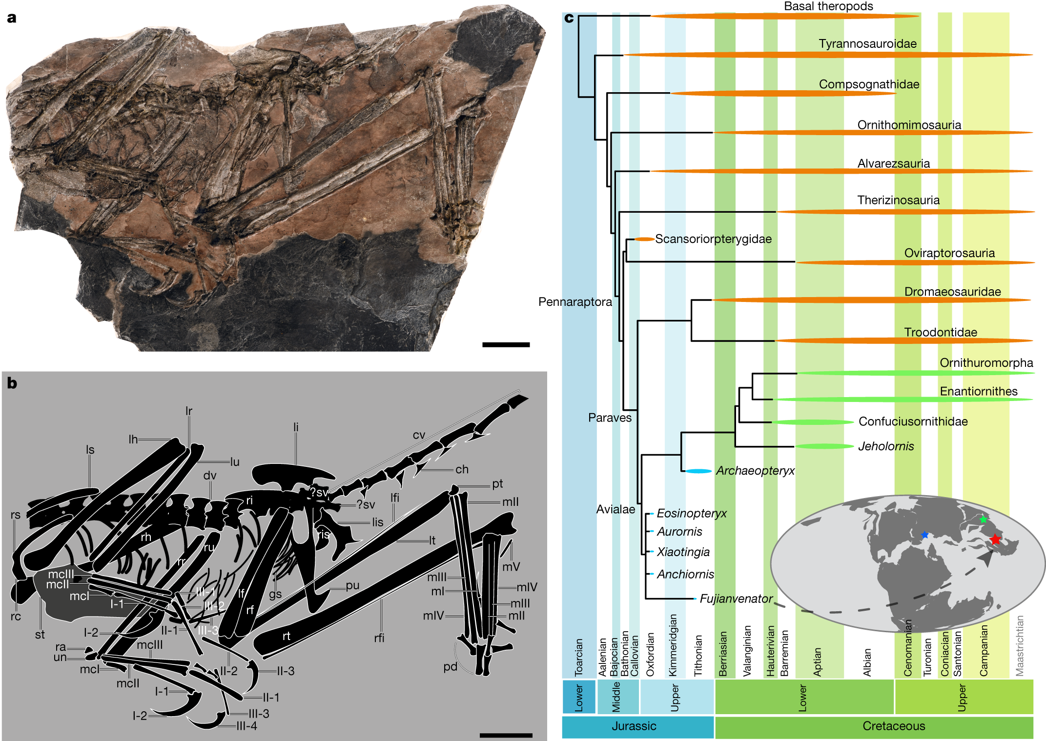2022 óta Min Wang paleontológus, a Pekingi Gerincesek Paleontológiai és Paleoantropológiai Intézetének munkatársa és kollégái egy új fosszíliagyűjteményt kutatnak: a Zhenghe faunát, amely Kína délkeleti részén, Fujian tartományban található. Az első évben találtak egy fosszíliát, amelyet Fujianvenator névre kereszteltek: ez egy madárszerű dinoszaurusz, amely valószínűleg közelebb állt a madarakhoz, mint más dinoszauruszokhoz. A Fujianvenator hosszú hátsó végtagokkal rendelkezett, ami arra utal, hogy valószínűleg sok időt töltött a vízben gázolva. A csapat a Zhenghe fauna korát 148–150 millió évre becsüli, vagyis nagyjából egyidejű az Archaeopteryxszel.