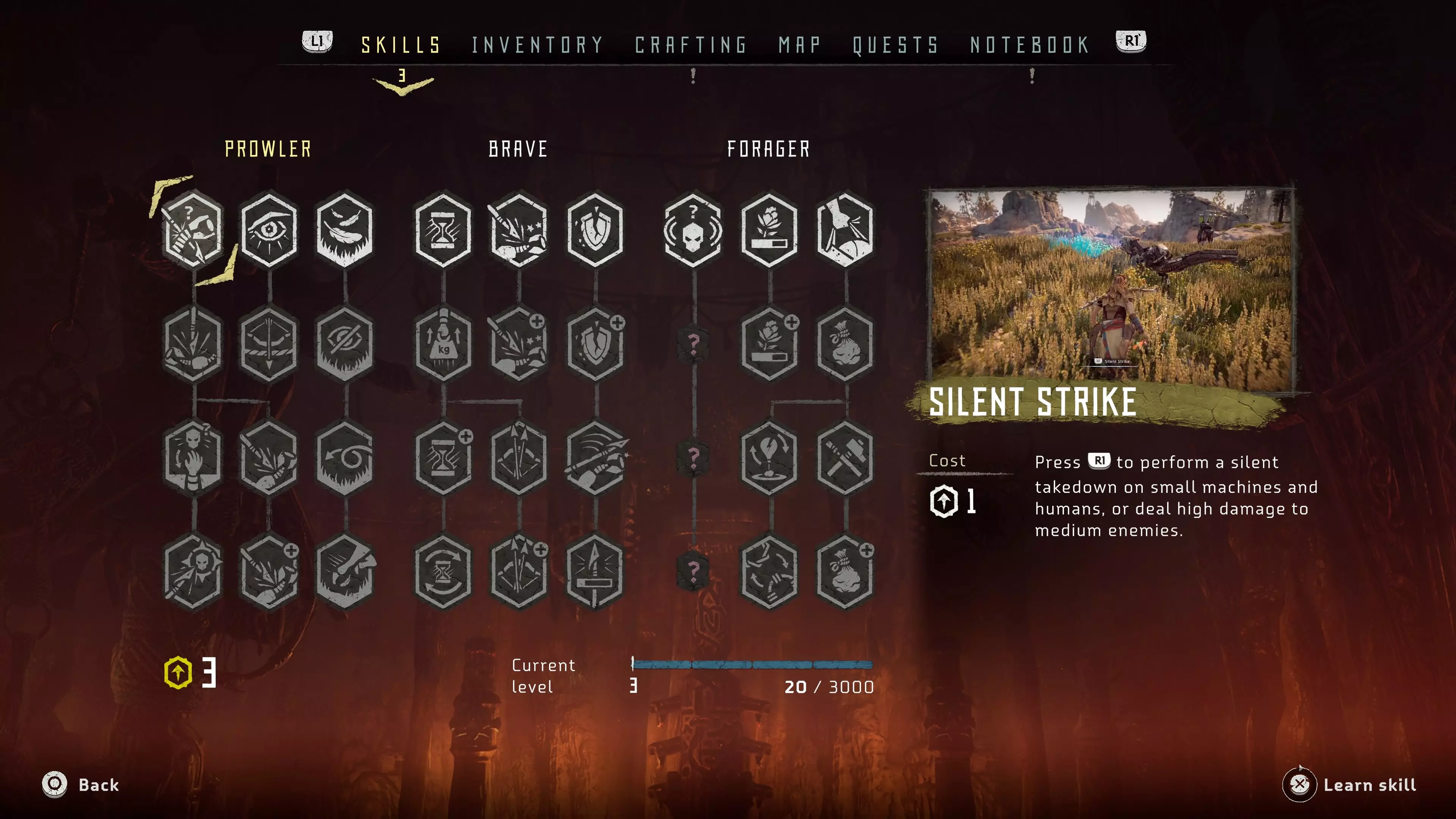 Tapasztalati pontot az összes fent említett lehetőség bőven oszt, de szimplán az öncélú masina vadászatból is kapjuk az XP-t. A karakterfejlődés ütemét jól eltalálták, csak úgy, mint a felszerelésünk fejlődését. A képességfa nem egy különösebben fantáziadús valami, de jó dolgokat lehet vele kinyitni, így motivál az újabb pontok megszerzésére. A gépekből és élő állatokból különböző tárgykészítéshez vagy kereskedéshez felhasználható alapanyagokat lehet kiszedni, de gyűjteni lehet és kell a mezei növényeket is, hasonló okból kifolyólag. Fegyvereket vagy páncélt nem gyárthatunk, de a komolyabb tárgyakért általában a fémdarabokon túl (ez a mezei fizetőeszköz) az árusok kérnek valami különleges, ritka alapanyagot is, például egy Sawtooth „szívét”, vagyis processzorát. Az általunk gyártható cuccok kimerülnek táskabővítésekben, lőszerben és életerő italokban. Érzésem szerint a rendszer bőven eleget nyújt, ha ennél is többet kéne gyűjtögetni, az már farmolóssá tenné a játékot, szóval itt is jól eltalálták az arányokat.