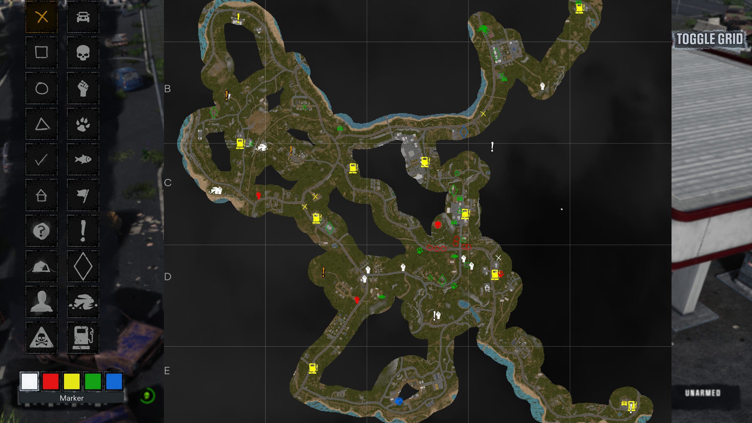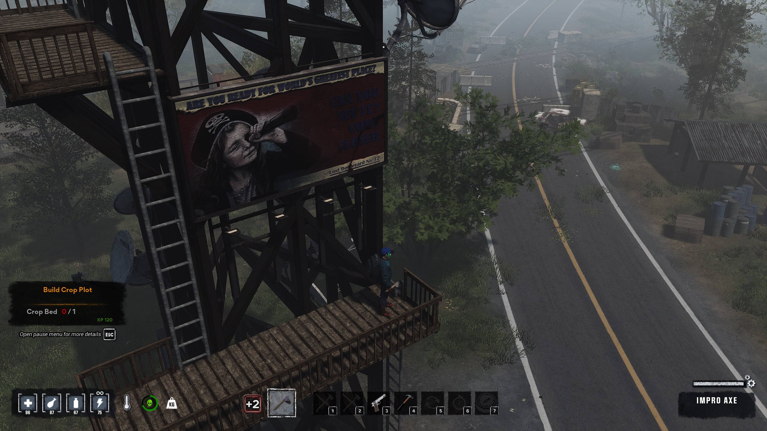 Kisebb „lakóparkok”, kisvárosok és nagyobb települések, farmok, reptér, katonai bázis, bunkerek és hasonlók tarkítják a térképet és nagyon hamar megtanuljuk, hogy minden hasznosat jelöljünk meg. A benzinkutak, autószerelő műhelyek, különféle boltok jó lootoló helyek, de még régiségkereskedő boltba is benézhetünk katanáért vagy spártai harcos felszerelésért. A karakterünk felszerelése is elég komplex, hiszen a réteges öltözet mellett jó lesz, ha különféle védelmet adó ruhadarabokat is találunk.