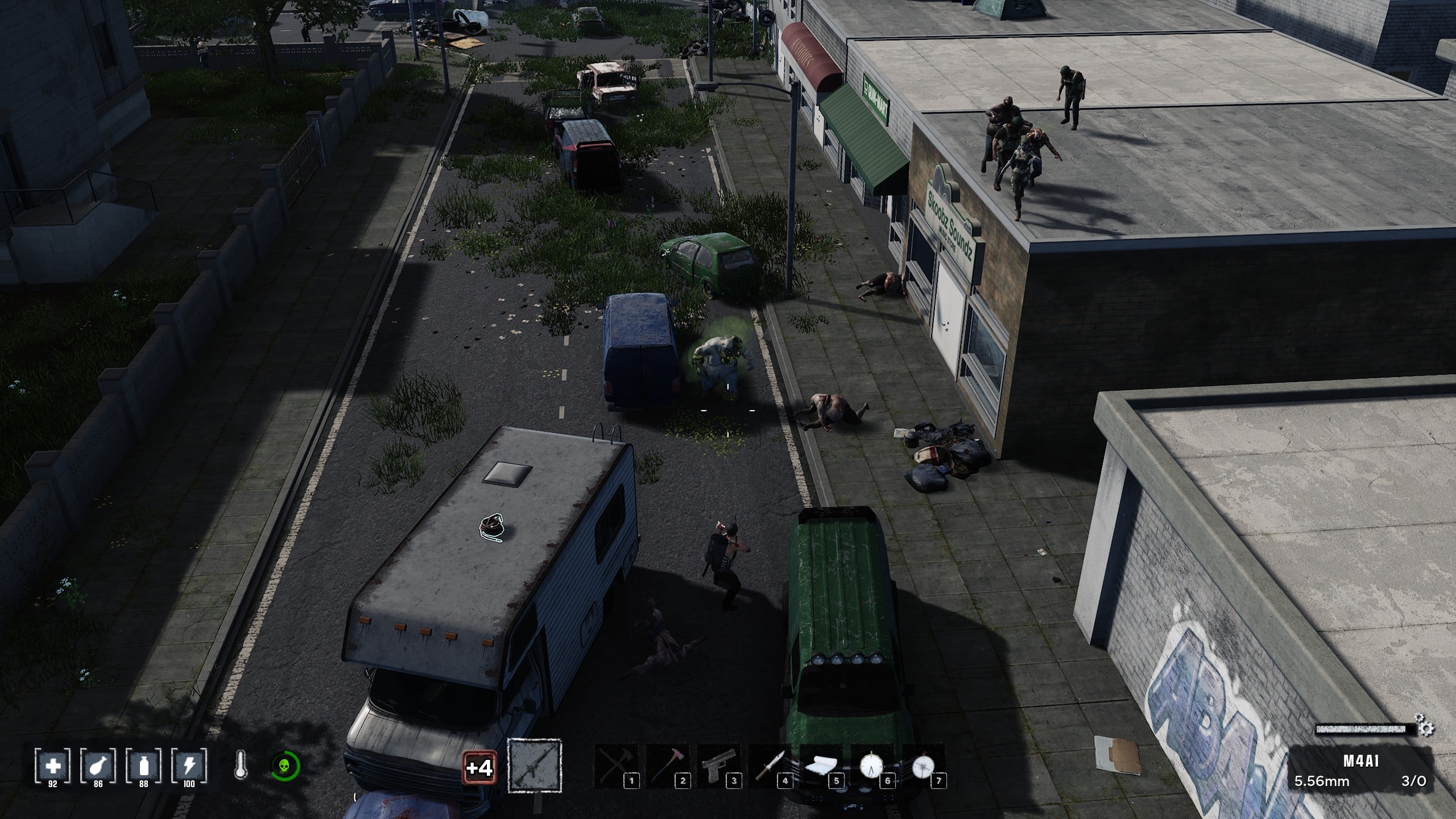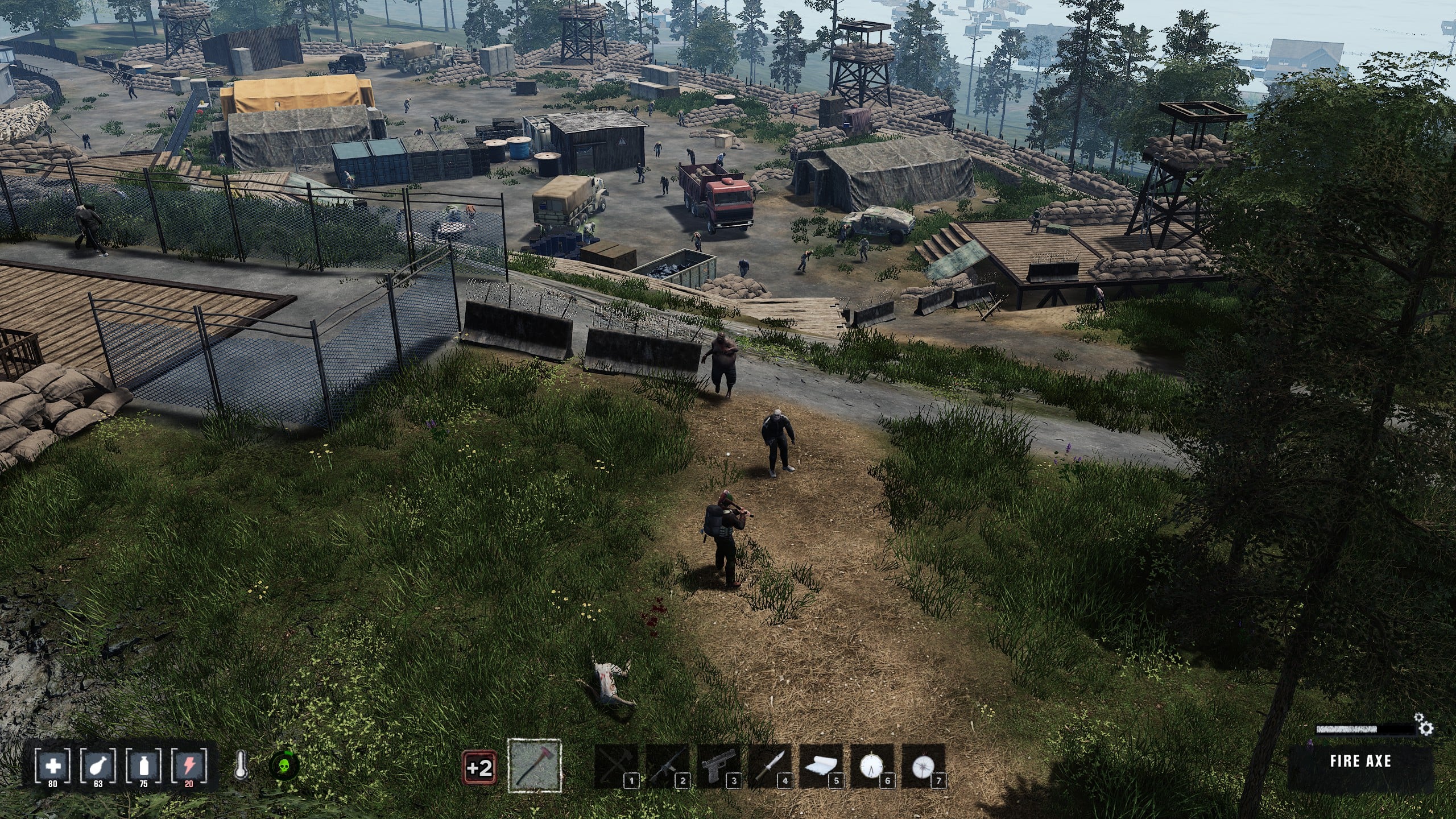 Ennél már csak a fegyverarzenál jobb, ami a könnyű géppuskától a karabélyokig, mesterlövész puskákon, pisztolyokon, íjon, nyílpuskán, vadászpuskákon át a közelharci fegyverekig terjed, mókás dolog, de az egyszerű kanál is fegyvernek számít. Az egészségünkre gyógyszerek vigyáznak és az sem elhanyagolandó dolog, hogy a zombik ütései, harapásai megfertőznek minket, tehát ha nem egy bandita, vagy az éhhalál végez velünk, még mindig zombivá változhatunk, ami a beállításoktól függ, hogy mennyire rossz hír.