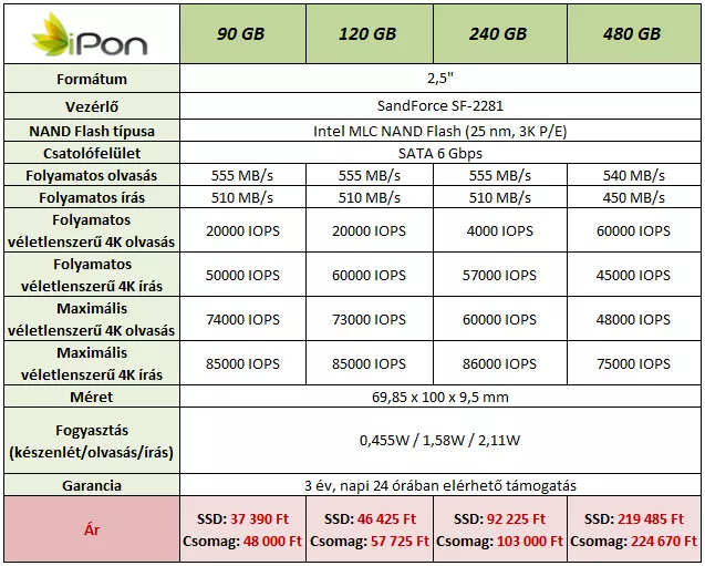 A HyperX 3K család 90 GB-os, 120 GB-os, 240 GB-os és 480 GB-os tagokat tartalmaz, amelyek pontos specifikációit a fenti táblázat összegzi.