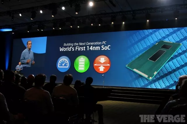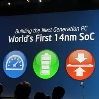 Arra persze fény derült, hogy a 14 nm-es gyártástechnológia alkalmazásával már készült működő Broadwell SoC egység, amit a gyártó illetékesei az előadás alkalmával be is mutattak a nagyérdeműnek. A 22 nm-es csíkszélességgel készülő Haswellhez képest az egyelőre csak a mobil piacot célba vevő Broadwell SoC komoly előnyökhöz jut a fejlettebb csíkszélesség - illetve az optimalizációk - jóvoltából: az új SoC segítségével az akkumulátor-üzemidő 30%-kal növelhető a Haswellhez képest, ami abszolút nem elhanyagolható előny. A vállalat illetékesei szerint a korai lapkákhoz képest a végleges termékek esetében ezen a téren további javulásra lehet számítani.