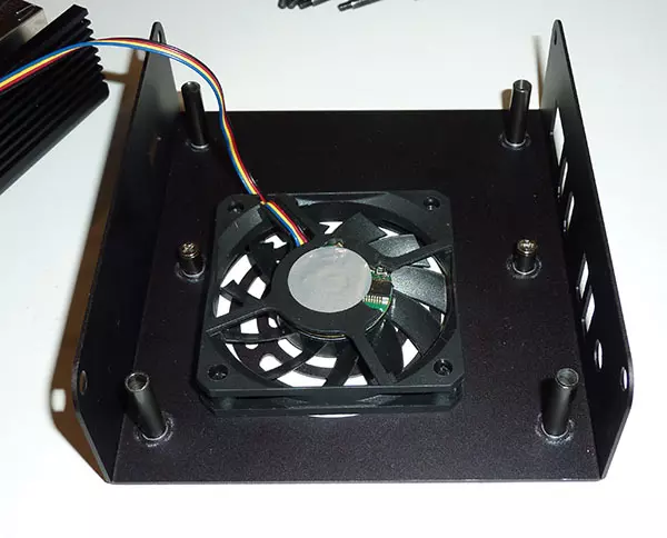 SilverStone PT14 NUC - Forrás: HeXus.netAnnak érdekében, hogy a hűtés hatásfoka mindig megfelelő lehessen, a számítógépház aljára bekerült egy 60 milliméteres átmérőjű, PWM támogatással is rendelkező légkeverő, amely szinte hangtalanul üzemel. A ház alját és tetejét néhány hosszabb csavar fogja össze.