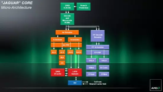 Az órajelenként végrehajtható műveletek számának 15%-os növeléséhez a Jaguar alapú megoldások 128-bites lebegőpontos egységet (FPU) alkalmaznak, amely számos fejlesztésen is átesett, így már a 256-bites AVX utasításokkal is megbirkózik. A sorban egy innovatív integer egység is jelen van, amely egy új hardveres osztót kapott.