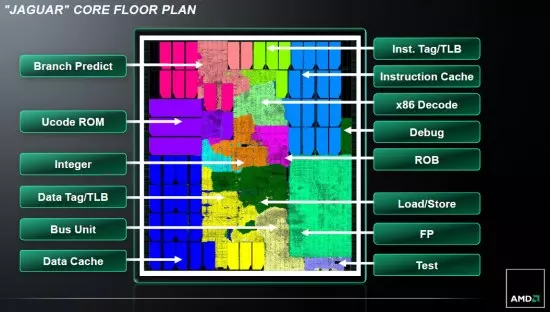 Az egyes Jaguar processzormagok 3,1 négyzetmilliméteres kiterjedésűek lesznek 28 nm-es gyártástechnológia alkalmazása mellett, ami látványos előrelépés a 40 nm-es Bobcat processzormagokhoz képest, amelyek még 4,9 négyzetmilliméteres kiterjedésűek voltak.