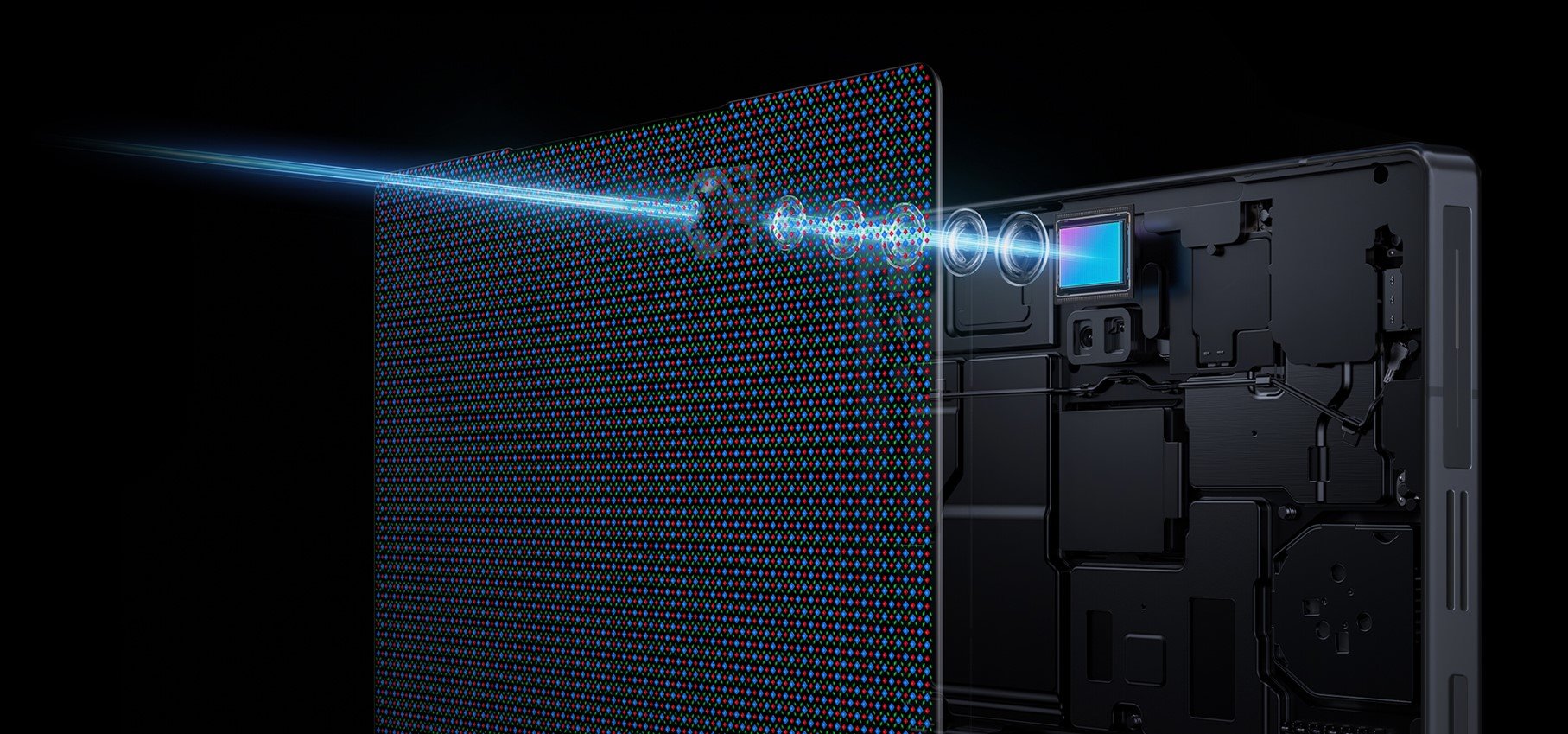 A látvány mindig kiemelten fontos a Redmagic okostelefonoknál, éppen ezért szinte négyzetes kialakítású, 6,85 colos panelt használnak, extravékony, 1,25 milliméteres kávával. Ennek köszönhetően 95,3% a hasznos felület aránya az előlapon, amihez az is hozzájárul, hogy kameralyuk sem töri meg az összefüggő felület. A képalkotó a panel mögé lett elrejtve.