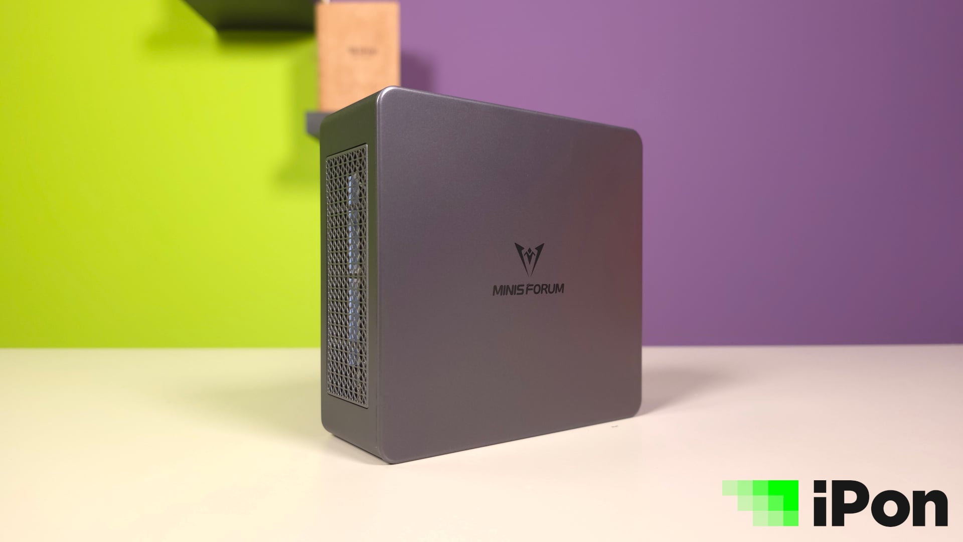 A letisztultság ezen a területen szinte alapvető követelmény, nem mintha ne láttunk volna az évek alatt furán bazári és meglehetősen faragatlan megoldásokat. A Minisforum azonban megspórolta nekünk ezeket a köröket, a gépház ugyanis egyszerűen nagyszerű, illetve nagyszerűen egyszerű. A szokásos módon lekerekített négyszöget kapjuk, azt is műanyagból, ám a sötétszürkés-fémes árnyalat kifejezetten jól áll neki és a plasztik is magas minőségű.
