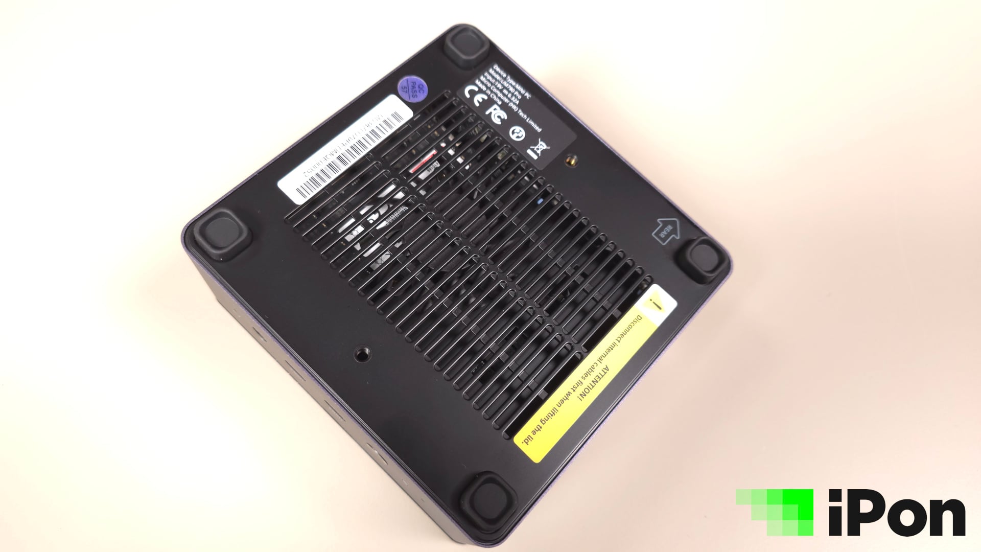 A gépházat a hátára fordítva előtűnik a készülék egyetlen aktív hűtőeleme, mely a szellőzőrács mögött teljesít szolgálatot. Apró szépséghiba, hogy a gépház csavarjait az amúgy pofás, de erősen a helyükre ragasztott gumitalpak mögé rejtették, én pedig nem akartam nekiesni szerszámokkal, hiszen még vissza kellett adnom. Mindenesetre nem volt túl nehéz információt lelni a belső felépítésről, mely ezt a kellemetlenséget leszámítva gondosan kitalált elrendezést mutat, amelyet az optimális hűtés elősegítését szem előtt tartva terveztek meg.