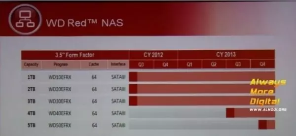 Az 5 TB-os WD Green modell WD50EZRX, az 5 TB-os WD Red modell pedig WD50ERFX termékkóddal érkezik. Közös tulajdonság, hogy mindkét adattároló 64 MB-os gyorsítótárat, illetve SATA 6 Gbps-os csatolófelületet alkalmaz majd. Ezek a termékek a következő év októberében kerülhetnek az üzletek polcaira, azaz még sokat kell rájuk várni.