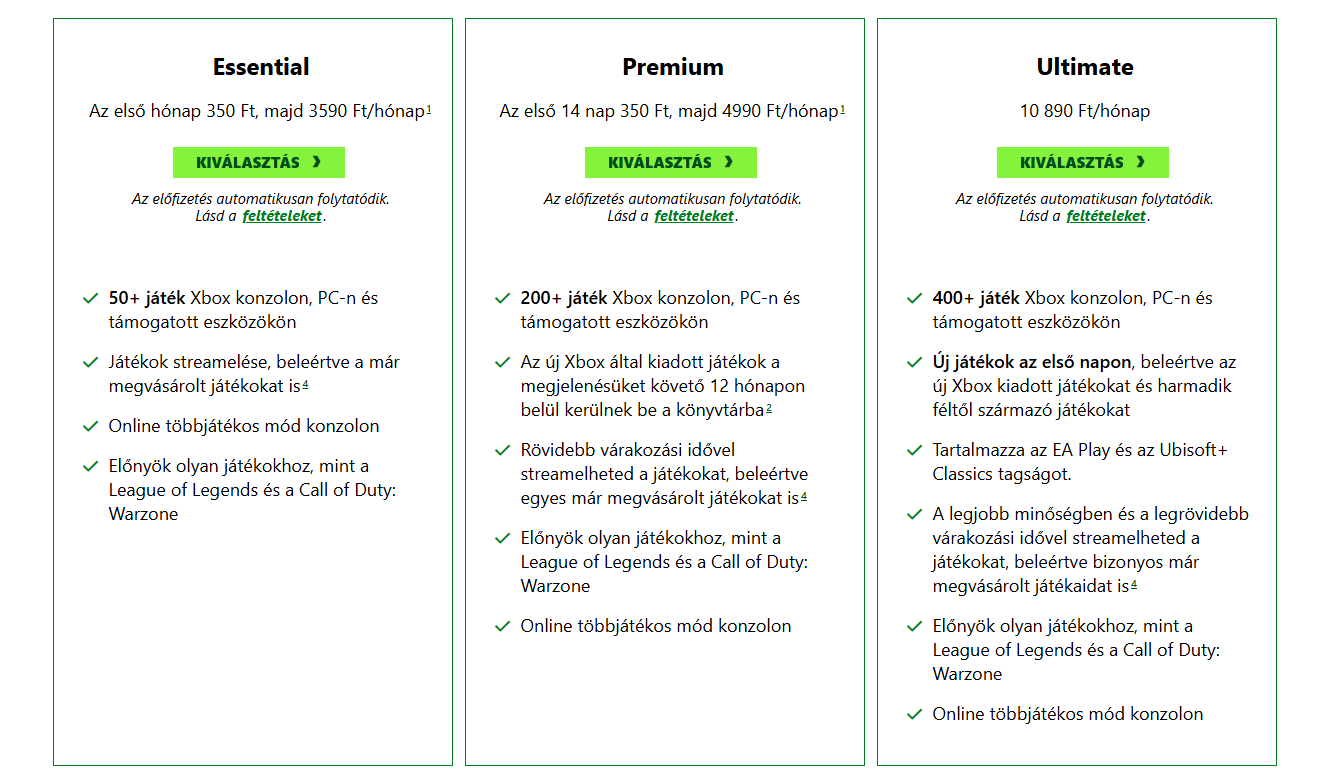 A második csomag, a Premium már 4990 forintba kerül, ami 200 játékot ad, és 12 hónapon belül megjelennek benne az Xboxos címek. Kivétel a Call of Duty játékok, azt azért apróbetűs részként a csomag mellé biggyesztették.
