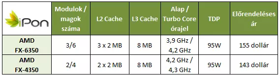 Az újdonságok között a négymagos FX-4350-es, illetve a hatmagos FX-6350-es modellt találjuk, amelyek szolgáltatások tekintetében tökéletesen megegyeznek egymással, illetve elődeikkel. A két új processzor már előrendelhető, így csak idő kérdése, mikor találkozhatunk velük az üzletek polcain.