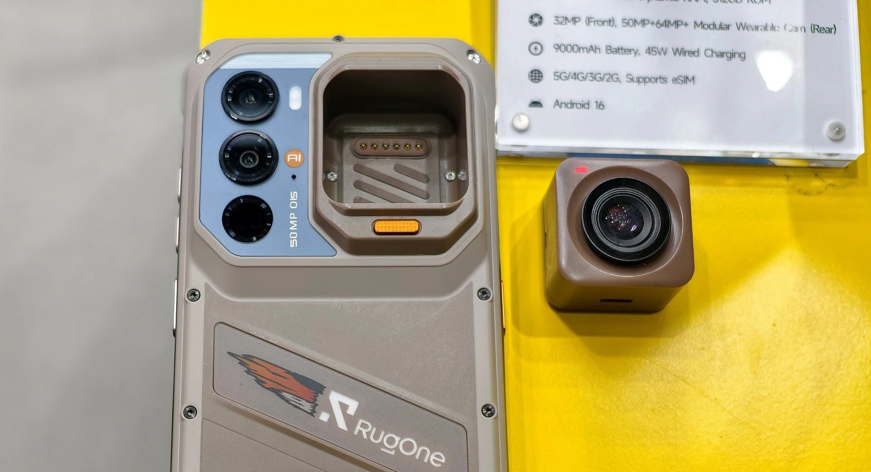 A RugOne Xsnap 7 Pro azzal hívta fel magára a figyelmet, hogy a hátulján a kameramodul egyik tagját egyszerűen ki lehet emelni a helyéről. Különálló akciókameraként lehet használni a képalkotót.