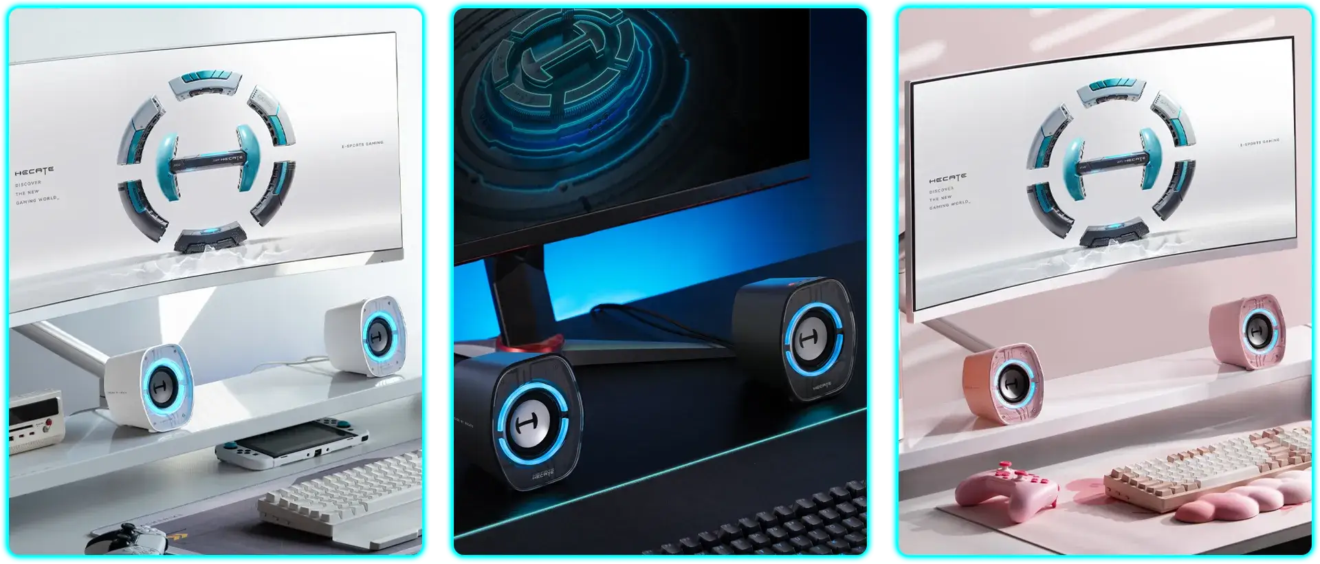 A gamer eszközöknél mindig fontos a megjelenés, és itt sincs ez másként. Noha egy olcsó és kicsi hangszóróról beszélhetünk, azért kapott RGB világítást. Több különböző fénymódot lehet használni, tud igazodni a Hecate G1000 II a játék mellett a filmezéshez és a zenehallgatáshoz is a fényekkel, miközben különböző EQ beállítások is biztosítottak ezekhez a felhasználási módokhoz. A látványhoz ezúttal az is hozzátesz, hogy az előlapon áttetsző műanyag lett a burkolat.