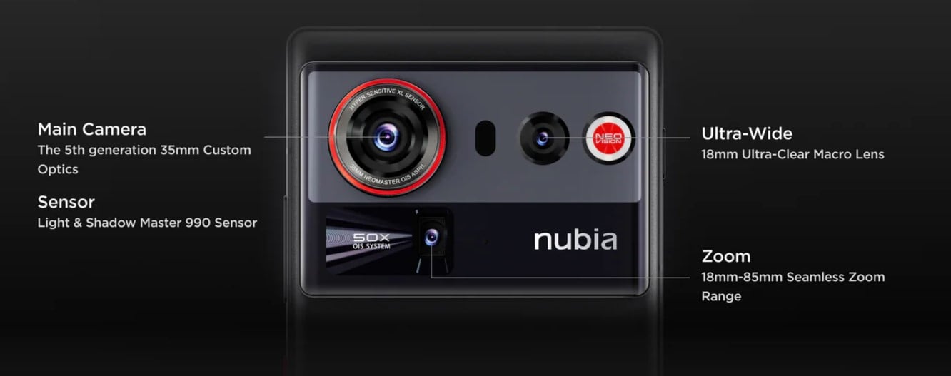 A szerkezet egyedi, 35 milliméteres gyújtótávú optikát használ az elsődleges képalkotónál. 50 megapixeles a főkamera, és 1/1,3 colos fizikai méret jellemzi a szenzort. Adott az optikai stabilizálás a simább felvételekért és a bemozdulások megelőzése érdekében, és F/1.7-es apertúrán keresztül tekint a világra a képalkotó. 8K Ultra HD videózás is megoldható a Z80 Ultrával, 4K-ban pedig már a 120 FPS-ről is gondoskodik, továbbá HDR videózásra is képes. A gyors és pontos élességállítást lézeres AF támogatás is segíti.