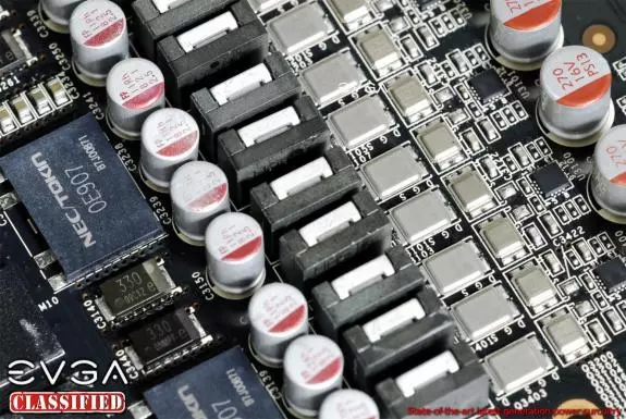 Az EVGA egyedi felépítéssel rendelkező GeForce GTX 580-as modellje a hagyományos GTX 580-as modelleknél magasabb nyomtatott áramköri lapot alkalmaz, hogy az extra, felsőkategóriás komponensek számára legyen elegendő hely. A plusz hely egyébként az átdolgozott tápellátó áramkör alkatrészeinek kell, ami stabil energiaellátást biztosít a rendszer számára, így komolyabb tuning alkalmával is ki tudja szolgálni a GPU-t, illetve a memória alrendszert. Az újdonság egy kétslotos, egyetlen hűtőventilátort alkalmazó hűtéssel kerül forgalomba és számos extrát kínál. A terméken a feszültség állapotáról árulkodó LED-ek, dupla BIOS (kapcsolóval lehet váltani köztük), valamint egy különleges kivezetés is helyet kap, amelynek segítségével monitorozhatóak a különböző feszültségek, illetve a tápellátó rendszer állapota.