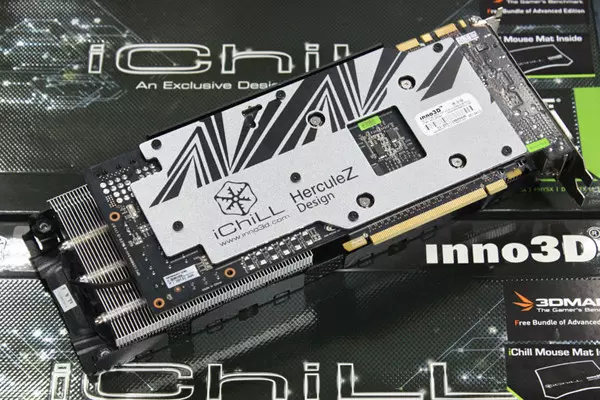 Az Inno3D GeForce GTX 760 iCHill HerzuleZ 3000 GPU-ja ehhez képest 1060 MHz-es alap- és 1124 MHz-es boost órajelet alkalmaz, a GDDR5-ös fedélzeti memória pedig 6,2 GHz-es effektív órajelen üzemel. A megfelelő hűtésről természetesen egy egyedi felépítésű videokártya hűtő gondoskodik, amely három darab, egyenként 80 milliméteres átmérőjű légkeverőt alkalmaz. A hatékonyabb hőelosztás érdekében a hátlapon egy hűtőlap is látható, ami merevítésnek is jó. A ventilátorok feletti fémkeret néhány csavar eltávolítása után leszedhető, így a ventilátorok és a hűtőtömbök könnyedén megtisztíthatóak a portól.