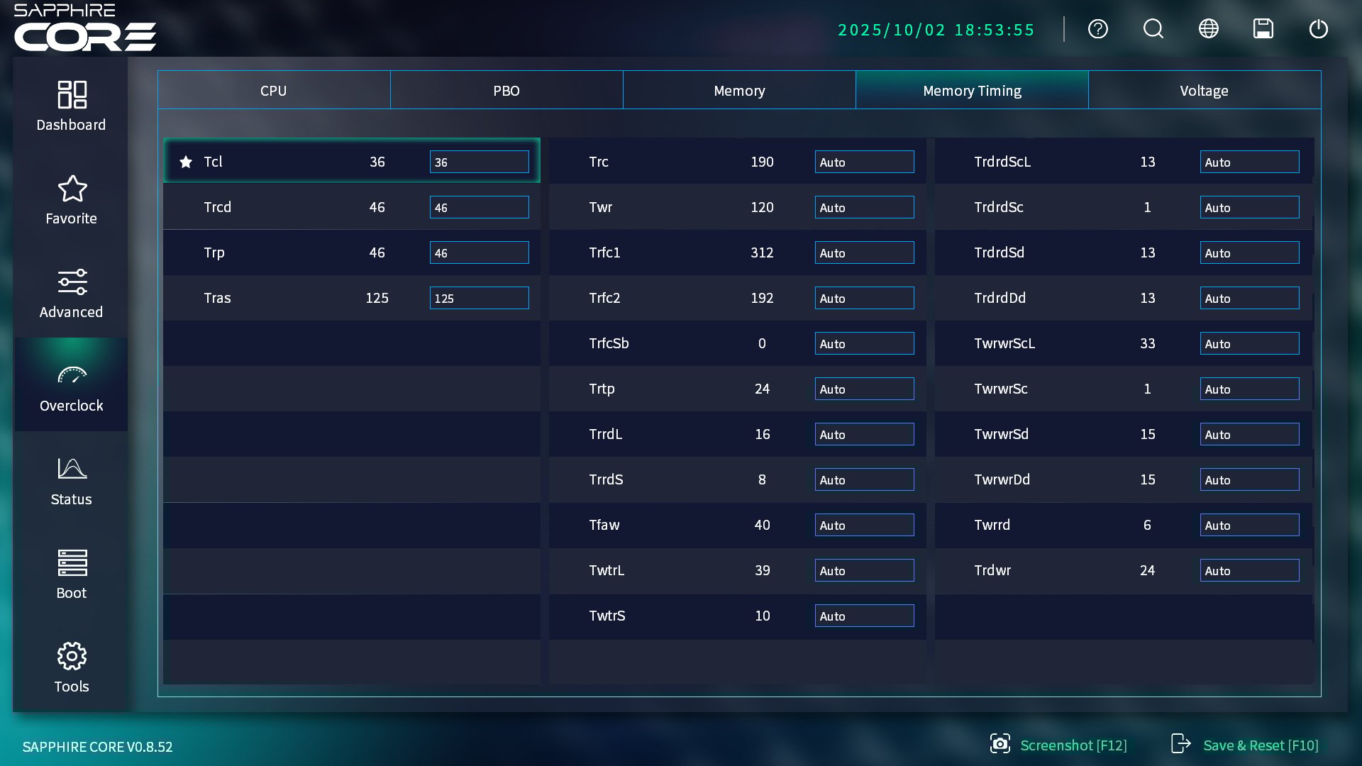 Az új alaplapokhoz újfajta BIOS is dukál, mely nem kis megkönnyebbülésemre kifejezetten jól sikerült. A SAPPHIRE CORE fantázianév egy meglehetősen jól kialakított felületet takar, mely elsősorban az átláthatóságra, kezelhetőségre hegyezi a hangsúlyt. Első ránézésre talán nem is vesszük komolyan, de alapvetően semmi sem hiányzik belőle, amit akár egy haladó felhasználó keresne egy modern UEFI felületen. Kifejezetten tetszett, hogy nem kellett a profibb vagy egyszerűsített nézetek között váltogatni, ugyanis a kezdőlapként szolgáló Dashboard csak egy a választható fülek között, a többi pedig magában foglalja a részletesebb beállításokat.
