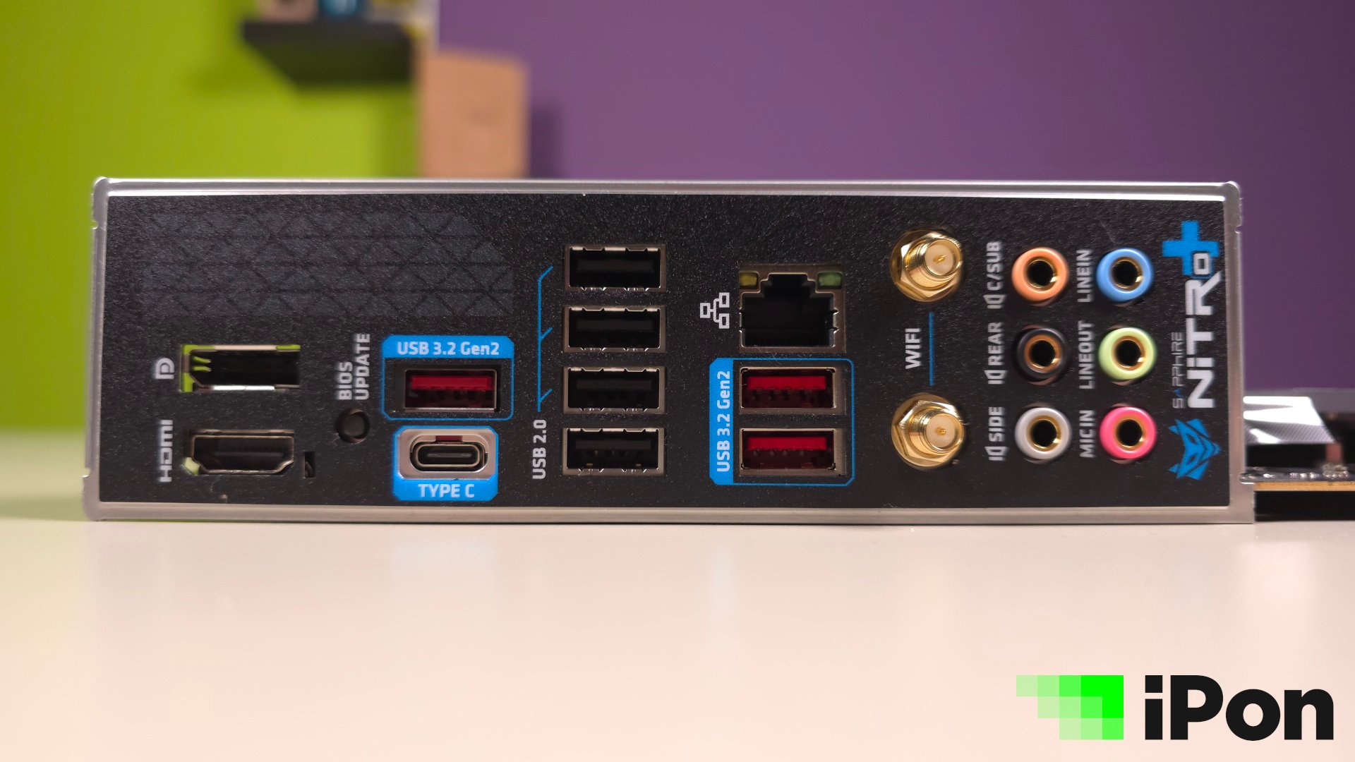 Hátlap | 1 × DisplayPort, 1 × HDMI ™, 1 × RJ45 LAN, 2 × Wi Fi Antenna; One-click Flash BIOS Button, 4 × USB 2.0, 3 × USB 3.2 Gen2 Type A; 1 × USB 3.2 Gen2 Type C, 6 × Audio Jack |