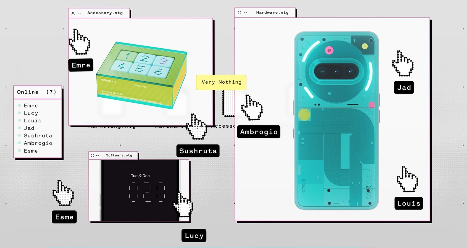 Emre Kayganaci találta ki a mobiltelefon megjelenését, Ambrogio Tacconi és Louis Aymond pedig egyedi kiegészítőket alkottak a készülékhez. Jad Zock munkája a háttérkép és az óra a lezárt képernyőn, Sushruta Sarkar meg a marketing oldalát dolgozta ki. Ezek a felhasználók az elmúlt hónapokban kollaborációban dolgoztak a Nothing saját tervezői, szoftveres, marketing és kreatív csapataival, hogy minden tökéletesen valósuljon meg.