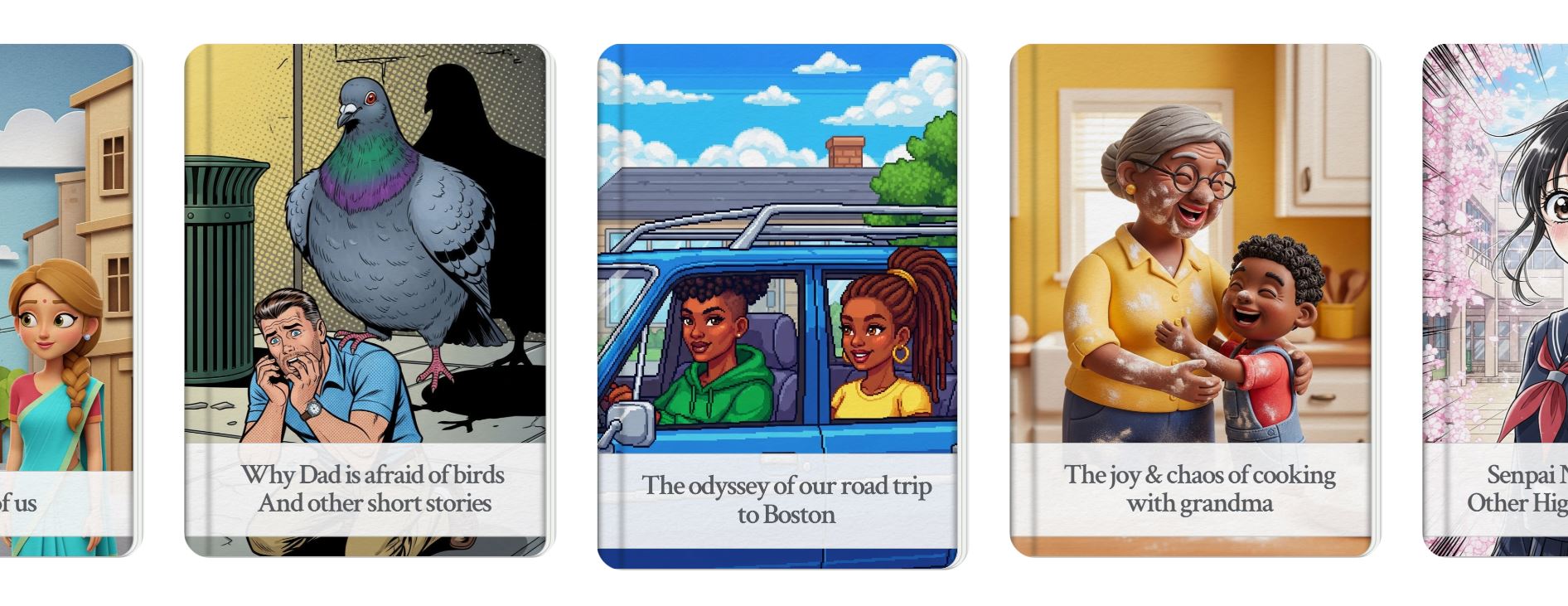 A korábban létrehozott könyveket azonnal el lehet érni a Storybook főoldaláról. Az összes előzmény ott sorakozik majd a megnyitást követően. A címet automatikusan hozza létre a Gemini ezek számára, és bár egy folyamatban létre lehet hozni több könyvet is, nem érdemes így tenni, mert akkor nehezebb lesz ezeket később visszakövetni. A történetek jelenleg minden esetben 10 oldalasok, és szerepel rajtuk a felhasználó neve készítőként.