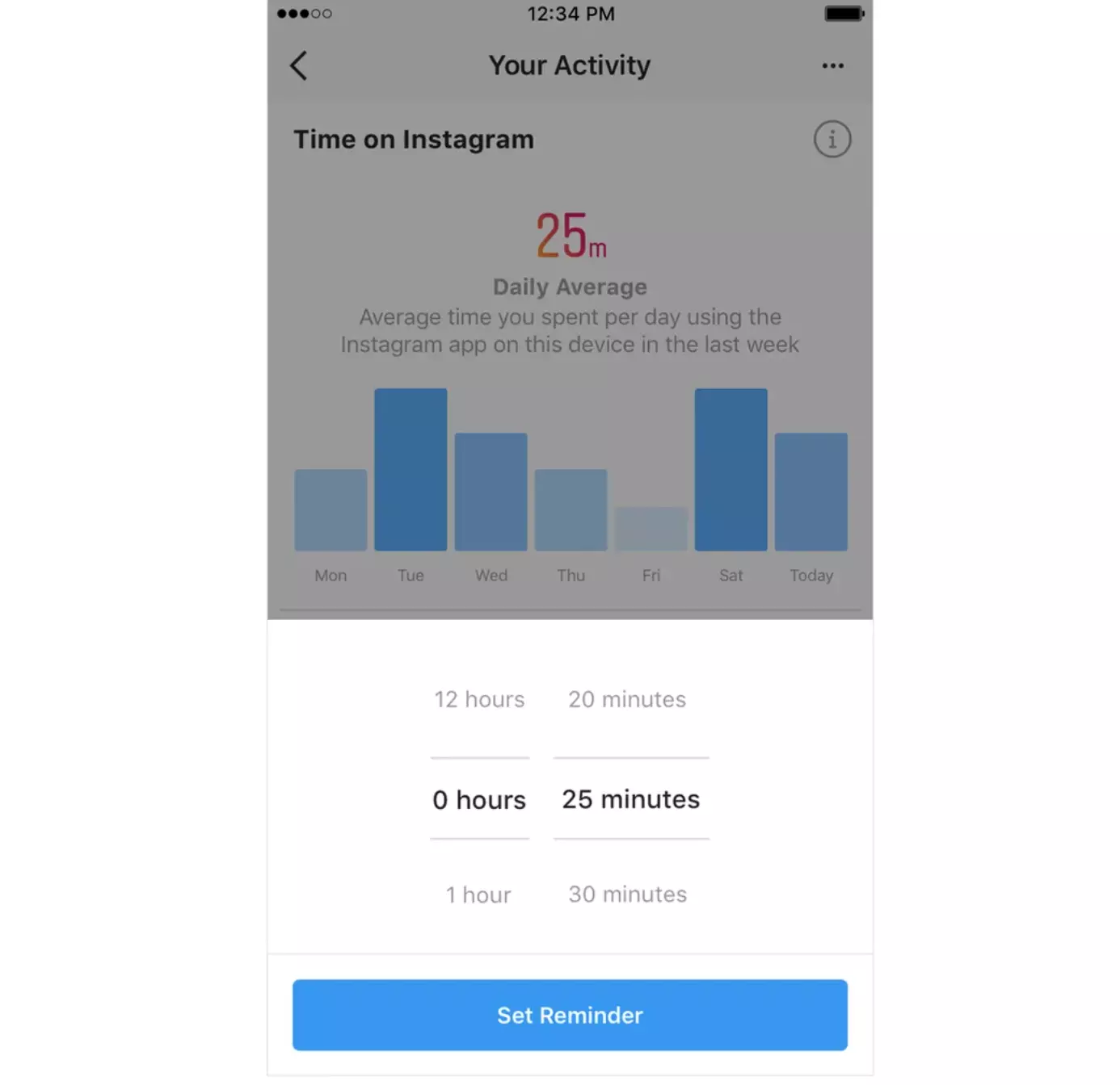 2018-ban került bevezetésre az Instagramon az alkalmazáshasználat szabályozására, és ezáltal az esetleges függőség kezelésére szolgáló napi korlátozás. Azonban az utóbbi időben többen is arra lettek figyelmesek, hogy ezt különböző formákban fellazította a vállalat.