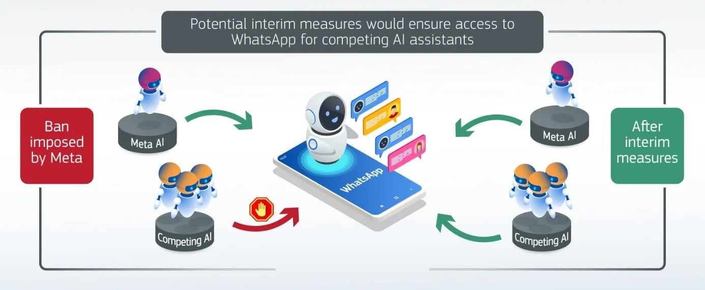 A Metát azért vette elő az Európai Bizottság, mert korábban a vállalat úgy módosította generatív MI asszisztensekre vonatkozó irányelveit, amivel kizárta a WhatsAppról a harmadik féltől származó chatbotokat. A döntés háttere egyértelmű: ezzel a cég saját MI eszköze, a Meta AI versenyelőnyhöz jutott a riválisokkal szemben.
