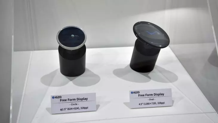 A Sharp három különböző koncepciót villantott a CEATEC Japan 2016 keretében. A legalapvetőbb egy „szimpla” kör alakú megjelenítő volt, amelyet a gyártó példának okáért személygépjárművek fedélzeti rendszerébe vizionált. Erre a panelre egyszerűen csak Circle néven hivatkozott a Sharp, a termék átlója 2,5 hüvelykes, a felbontása pedig mindféle szabványtól elrugaszkodva 824 x 824 képpontos lett. A második Free-Form technológiás kijelzőre Oval-ként hivatkozik a Sharp, és ez értelemszerűen ovális vonalvezetéssel bír. Az Oval és a Circle ugyanarra a panelre épül, ezáltal mind a kettő 328 PPI-s pixelsűrűséget vonultat fel. A különbség az, hogy az Oval már 1280 x 720 képpontos felbontással dolgozik és 4,5 colos – persze minden adat csak a legtávolabbi pontjain értendő, mivel ugye nem négyzetes az alakja.