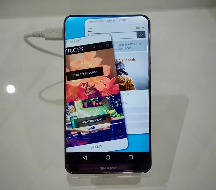 A CEATEC-en az igazi érdekesség viszont nem az Oval vagy a Circle volt, ha már a Free-Form Displayről van szó, hanem a Corner R okostelefon. A Corner R koncepciónak a neve arra utal, hogy a panelnek lekerekítettek a sarkai (rounded), és a Sharp azt is megoldotta, hogy oldalt és felül szinte egyáltalán nincs káva, csak alul van egy jelzésértékű sáv. A Corner R látszólag egy valóban működő mobil, ám arról nem esett szó, hogy milyen hardver található benne. A megjelenítő 5,2 hüvelykes átlóval rendelkezik a felbontása pedig 1920 x 1080 képpontos, ennek megfelelőn 425 PPI-s pixelsűrűségről lehet beszélni, szóval komolyabb minőséget nyújt, mint a másik két társa. A japánok arra nem tértek ki, hogy hány százalékos a telefon hasznos felületének aránya, de nem volna meglepő, ha nem lenne vetélytársa a piacon. Minden Free-Form eljárással készülő megjelenítő IGZO technológiára épül, amit a Sharp hosszú évek óta használ előszeretettel. A megváltoztatott összetevőkre (Indium-Gallium-Zink-Oxid) épülő kijelzők számos előnnyel rendelkeznek, a hagyományos TFT-khez képest, például az alakjukat is könnyebb igények szerint szabni.