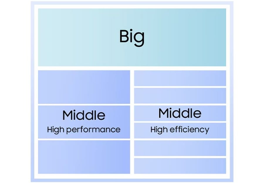 A legújabb Arm komponenseket felhasználva alkotta meg a Samsung chiptervező csapata az újdonságot. Az új gyártási technológia mellett további érdekessége az egységnek, hogy tízmagos felépítéssel rendelkezik. A maximális teljesítményt egy szálas terhelés esetén egy C1-Ultra mag biztosítja majd, ami 3,8 GHz-es órajel elérésére lesz képes. A Samsung nem lépi át a 4 GHz-es határt, ebből a szempontból nem követi a Qualcommot és a MediaTeket. A chipben a középső klasztert három darab C1-Pro mag alkotja, ezek 3,25 GHz-re lesznek hangolva, a lista végén pedig hat darab C1-Pro található, már 2,75 GHz-es frekvenciára korlátozva.