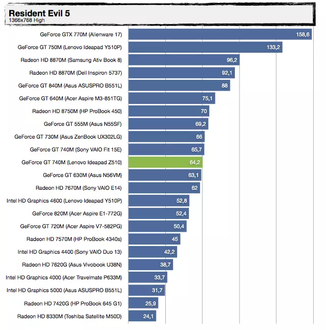 A négymagos Core i7-4702MQ dacára annak, hogy igyekszik takarékoskodni fogyasztásával, erőben azért még így is elég jól áll, nem meglepő módon az összes kétmagos vetélytársát megelőzi és a komolyabb négymagosoktól se marad el sokkal. A kérdés inkább az, hogy aki főleg játékra venné a Z510-et, annak szüksége van-e a jelentős felárral megvásárolható modellre vagy bőven elég, ha a kétmagos, de magasabb órajelen ketyegő Core i5-4200M mellett dönt?