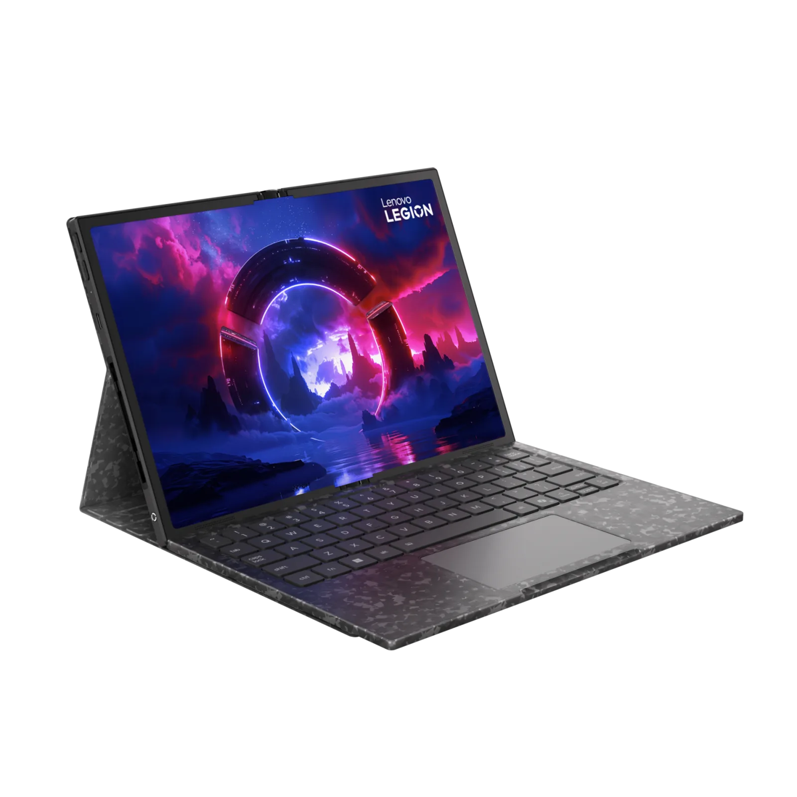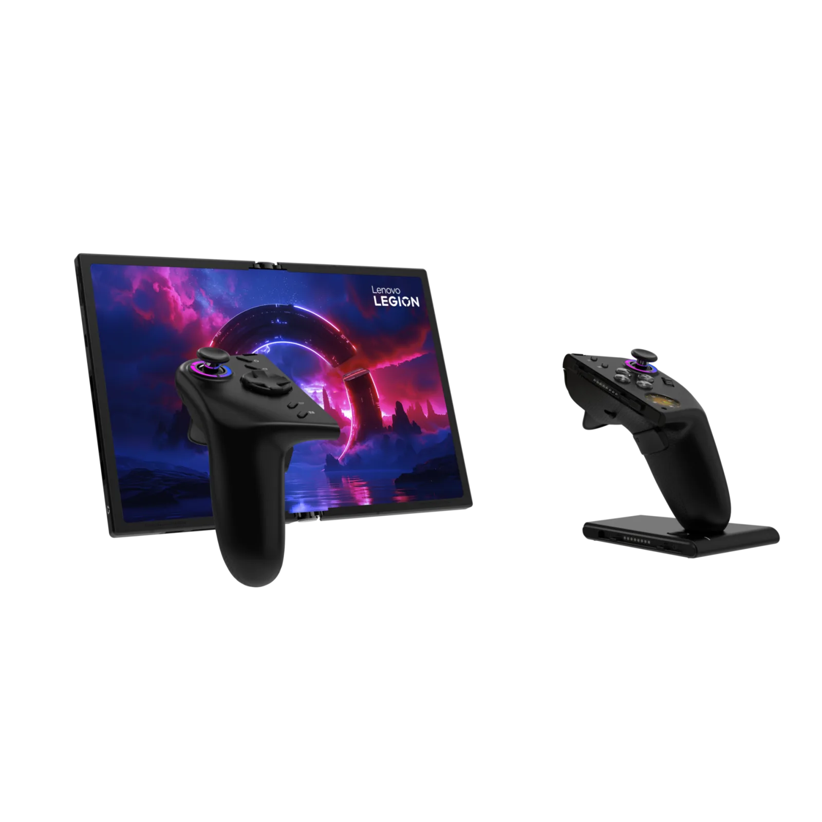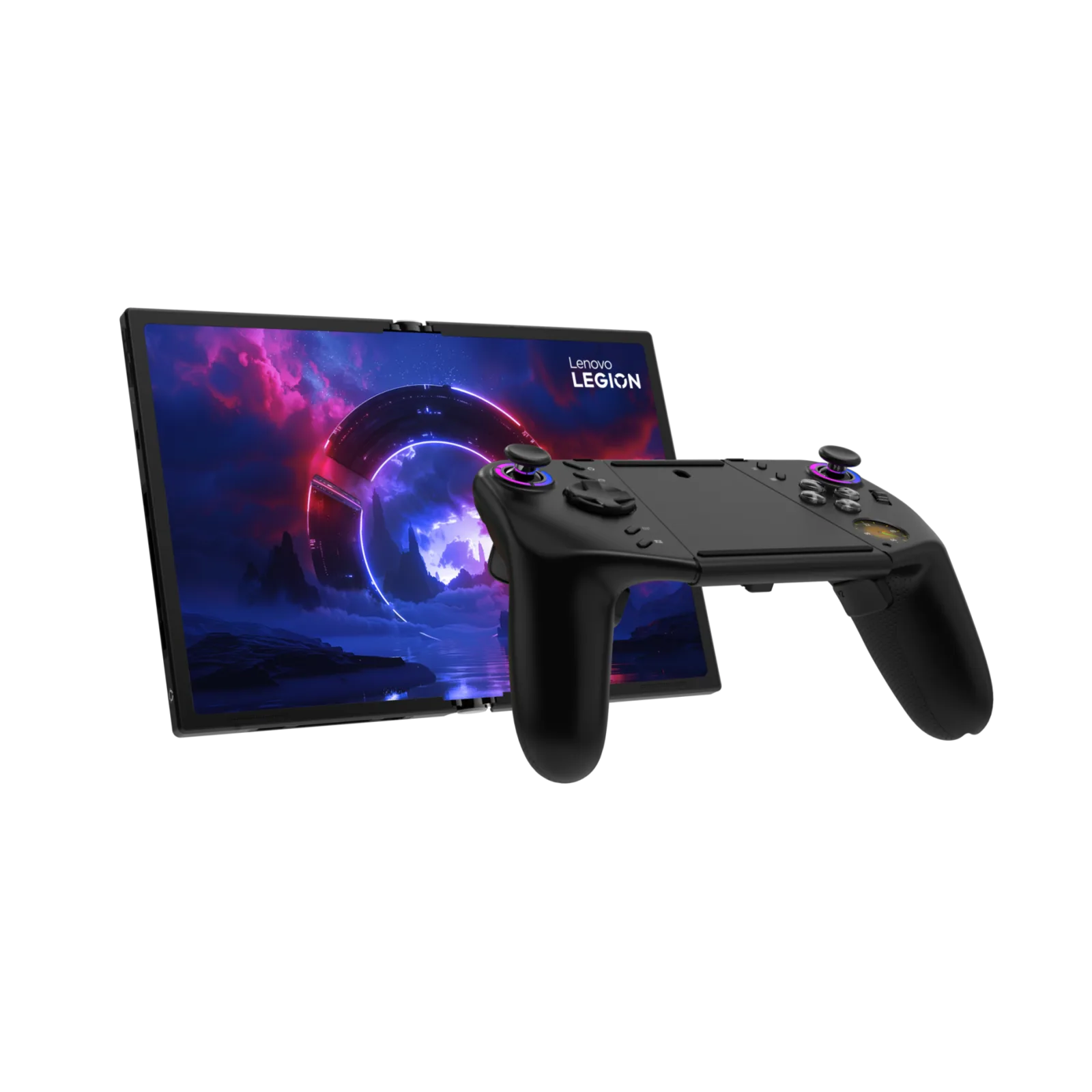 Az újdonság alapját egy önálló tábla adja, ami ketté hajtható POLED kijelzőt adott, ehhez pedig jár a Legion Go háza tájáról már ismerős vezérlőpáros is, ezek a kijelző két oldalán kaphatnak helyet. A tábla önmagában is könnyedén használható, hála az érintőkijelzőnek, de a kontrollerek segítségével is kezelhető – az egyiket egér formájában is használhatjuk. A kontrollerek a kijelző mindkét állapotában csatlakozhatnak az eszközhöz, sőt, a rendszer egy külön billentyűzet révén még noteszgép módban is működhet, azaz meglehetősen sokoldalú.