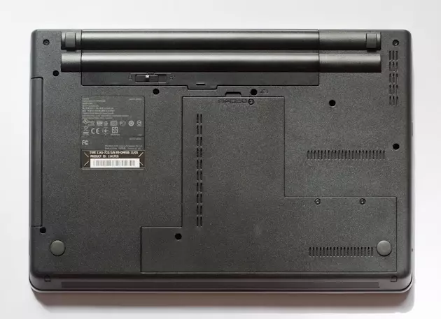 A legnagyobb változás kétségkívül a külsőt érintette, ez főleg a gép kinyitása előtt figyelhető meg. A korábbi csillogó fekete, illetve piros fedőlap teljesen matt feketévé változott (bár hasonló opció az előző generációnál is létezett), amely nem csak a minőségérzetnek tett jót. Változtattak ugyanis a kasztni merevségén is, így kategóriájában ritkának számít az E420 robusztussága. A zsanérok ezúttal is fémből vannak és érzésre tartósnak ígérkeznek. Se mágneses, se mechanikus zárral nem találkozunk, ettől függetlenül fejjel lefelé is bátran szállíthatjuk a gépet, gyakorlatilag nulla az esélye, hogy az alsó és felső burkolat eltávolodjon egymástól és a készülék kinyíljon. Díjaztuk továbbá azt is, hogy könnyedén ki tudtuk nyitni a gépet anélkül, hogy az alsó burkolatra rá kellett volna támaszkodnunk a folyamat közben. Egész egyszerűen csak meg kell fogni a kijelző feletti kávát és végrehajtani a műveletet – mint a drágább üzleti gépek esetében. Bár a készülék alja elrendezését tekintve megváltozott, ettől függetlenül mindent ugyanúgy tudunk cserélni, mint korábban.