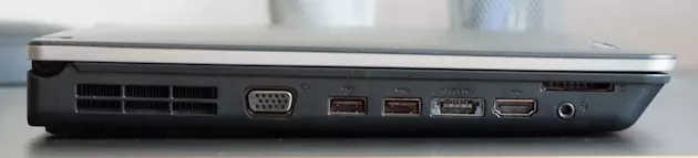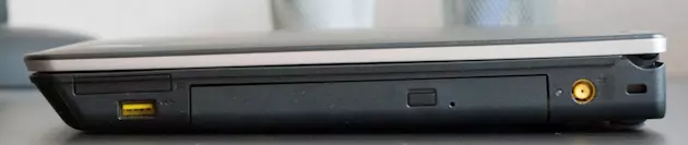 A gép oldala is tartogat újdonságokat, hiszen egyrészt teljesen eltűnt az ezüst díszítés, másrészt végre hátra került a vezetékes hálózati csatlakozó, illetve most is kaptunk egy kikapcsolt állapotban is töltésre alkalmas (sárga) USB aljzatot.