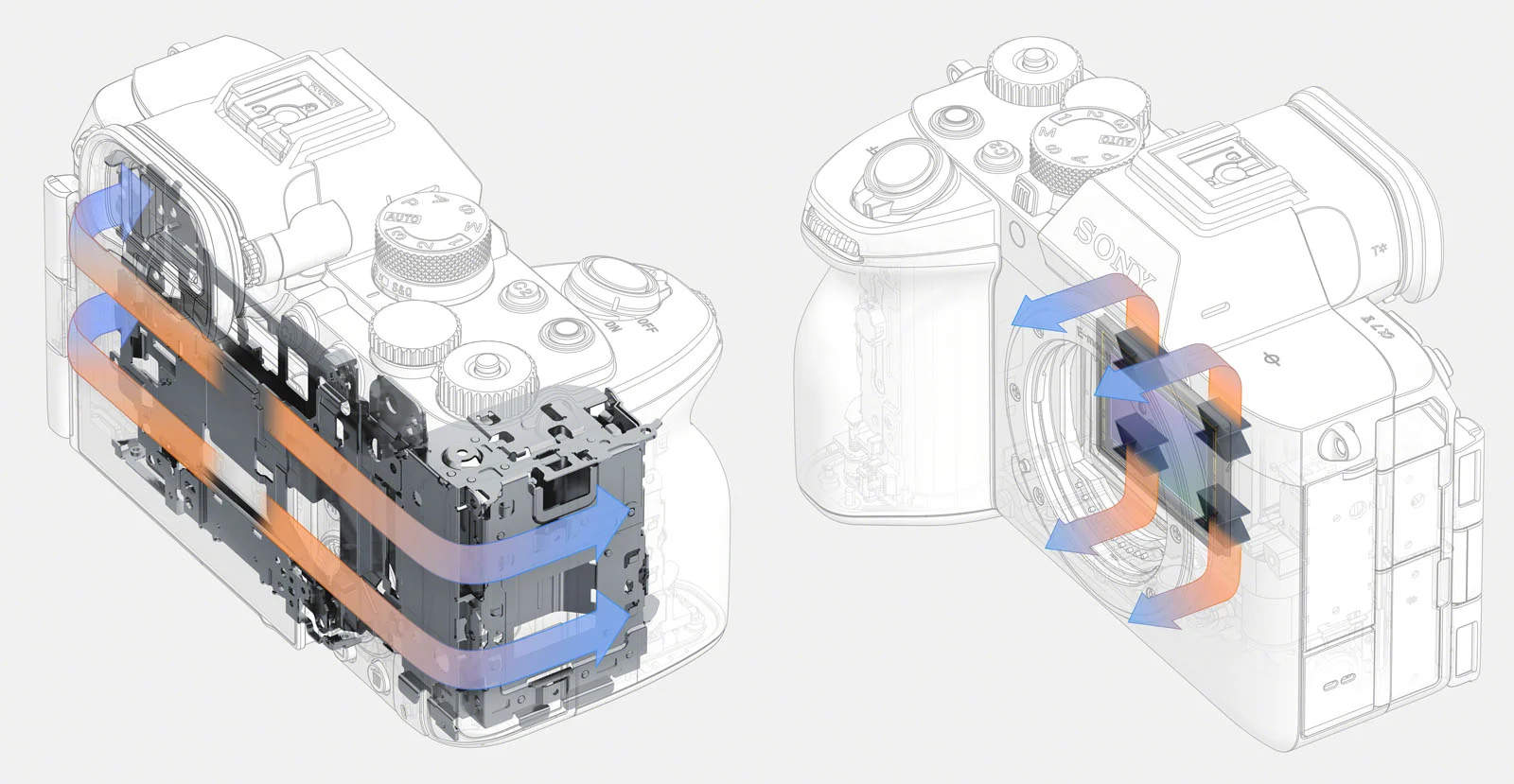 Külön kiemelte a Sony azt, hogy a videózás közben sokkal kevésbé fog melegedni az α7 V, mint az elődje, annak köszönhetően, hogy lényegesen jobb lett a felépítés a hőelvezetés szempontjából. 40 fokos hőségben is gond nélkül lehet vele 1 órán át szünet nélkül videózni 4K60p XAVC S 150M 4:2:0 beállításban. Állítólag ugyanilyen helyzetben az α7 IV mindössze 10 percet bírt túlmelegedés nélkül. Támogatja már a készülék az S-Cinetone funkciót is, van automatikus keretezési lehetőség, és a LUT importálás már az előnézethez is megoldható.