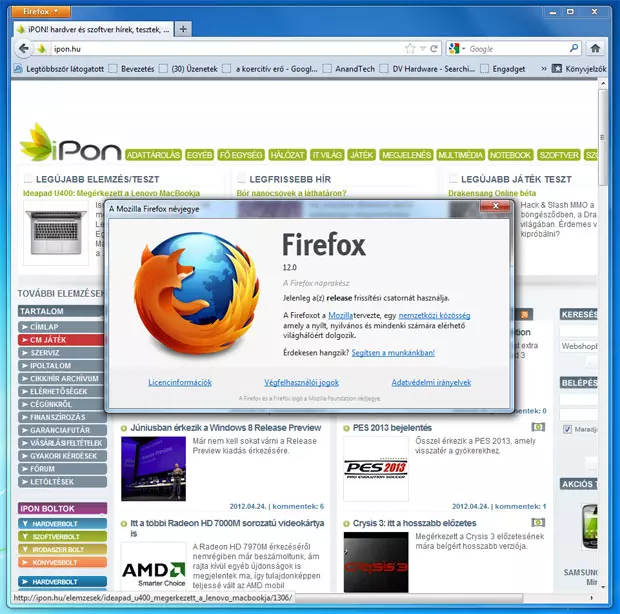A Mozilla szoftvermérnökei elkészültek a Firefox legfrissebb változatával, amely immár a 12-es verziószámot viseli. A Firefox 12 több biztonsági frissítést is tartalmaz, némi finomhangoláson is átesett, és az előző kiadáshoz képest több újítást is felvonultat.