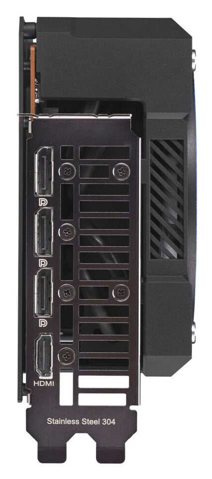 A GPU 256-bites memória-adatsínen keresztül kapcsolódik a 16 GB-nyi GDDR6-os fedélzeti memóriához, ami a 20 GHz-es effektív órajel révén 644 GB/s-os memória-sávszélességet oszthat be. A referencia modelleknél a GPU Boost órajele 2970 MHz-en tetőzik, ezúttal viszont egy OC Edition kiadásról van szó, ami már 3080 MHz-es GPU Boost órajelet vethet be. A memória-alrendszer a referenciának megfelelő órajelen ketyeg, azon a téren nem került sor tuningra. A videokártya tápellátását három darab nyolctűs PCI Express tápcsatlakozón keresztül biztosíthatjuk.