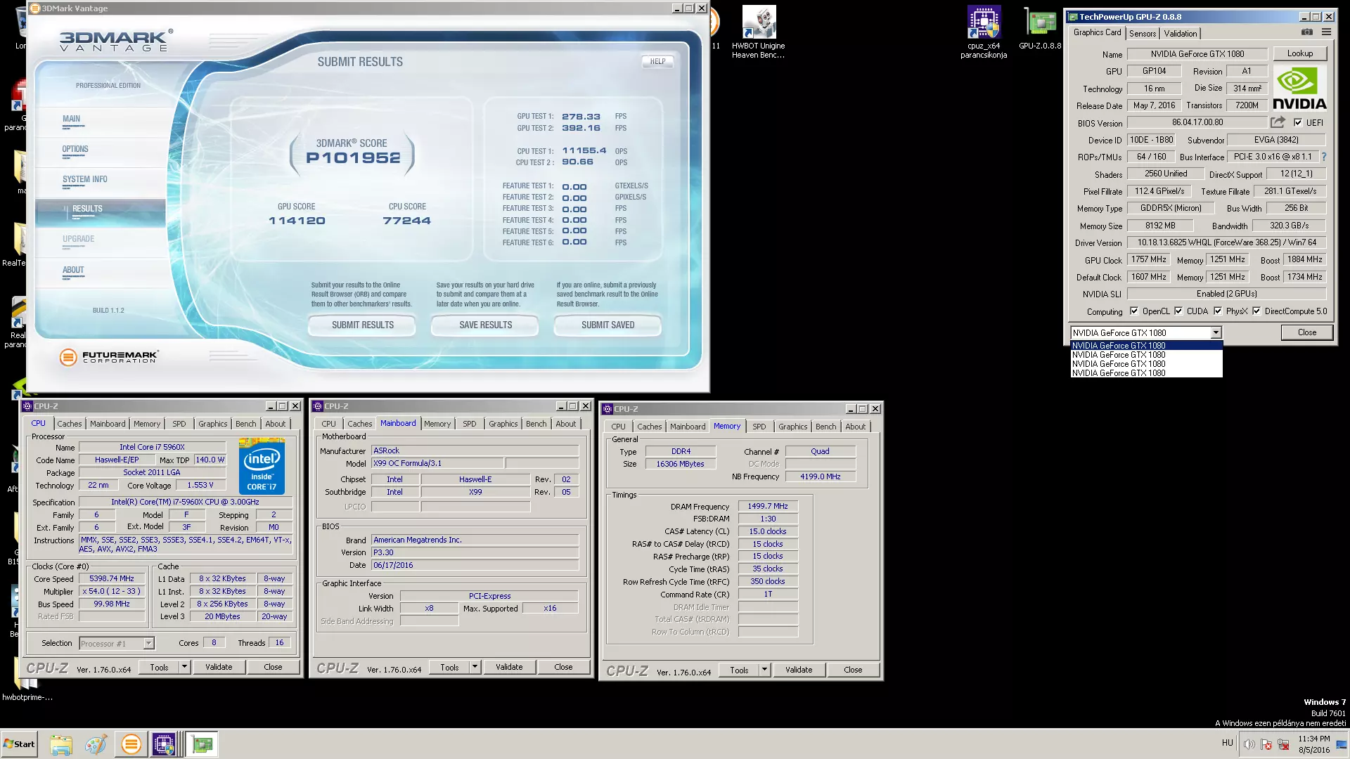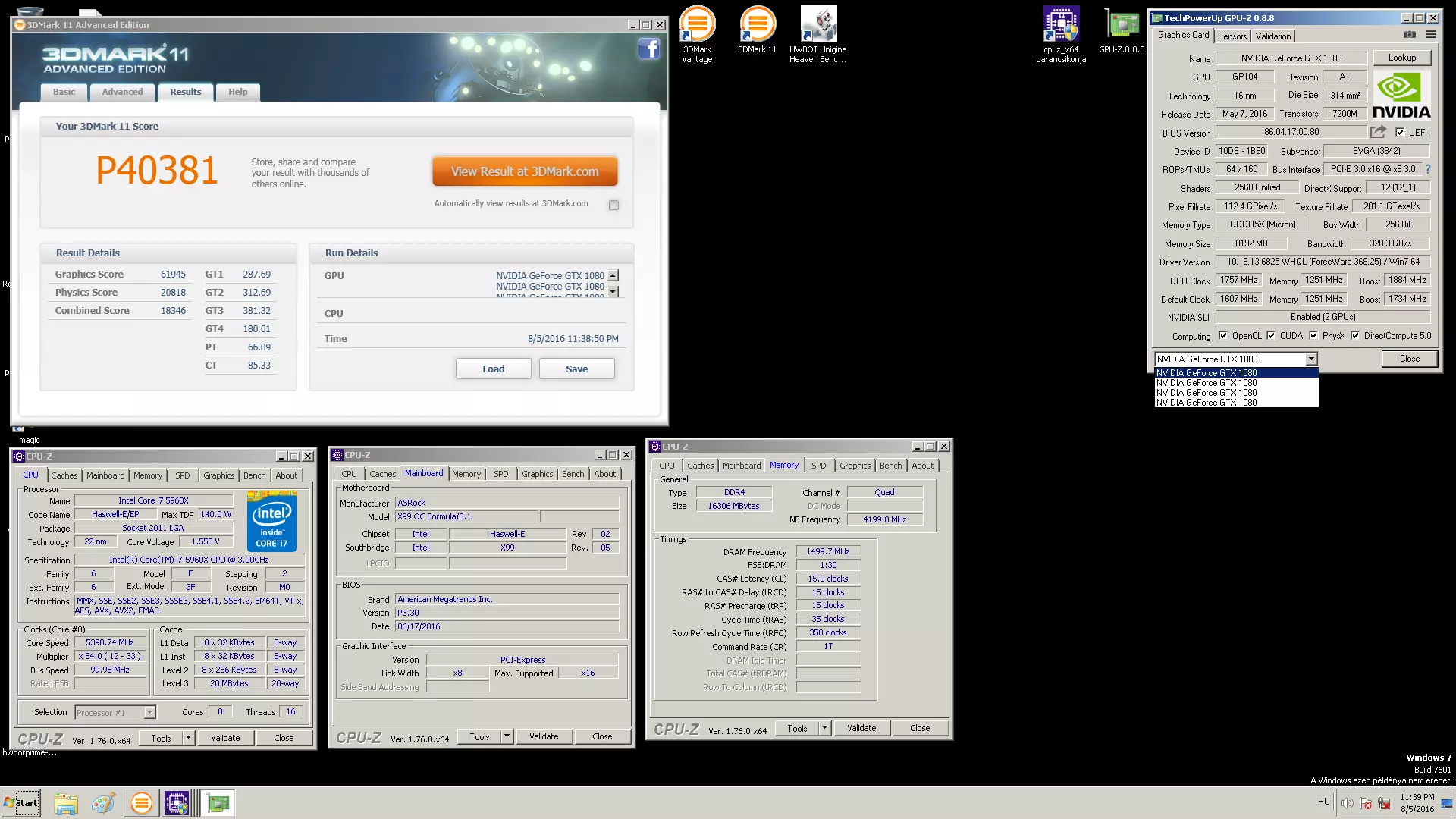 3DMark11-ben és Vantage-ben 2 GPU-val sikerült hazai rekordot elérni, és felkerülni a világranglistára 20. és 11. helyen, de ott az új TITAN X-ek miatt a GTX1080-asokkal valószínűleg nehéz lesz sokkal előrébb jutni. Mindenesetre Subarwrc szerint még lehet egy kis tartalék a rendszerben, főleg a processzorban, úgyhogy reményei szerint még tud emelni a pontszámain.