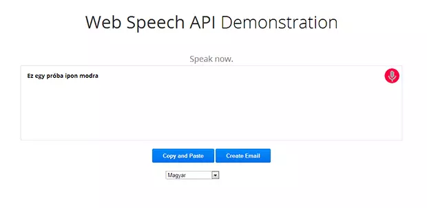 A Google szoftvermérnökei már egy alkalmazást is készítettek, amellyel kipróbálható a Web Speech API. Aki ki szeretné próbálni, hogy az alkalmazás milyen hatásfokkal alakítja beszédünket írássá, kattintson ide. Mi is kipróbáltuk a funkciót: a lediktált tesztmondatot elsőre is tökéletesen értelmezte a rendszer, ahogy az a fenti képen is látszik. A helyesírással vannak bajok, de most nem is ez a lényeg, hanem az, hogy a funkció a jelek szerint szépen működik.
